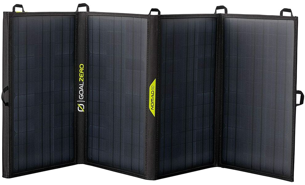 Портативна сонячна панель Goal Zero Nomad 50 створена для базових таборів та тривалих експедицій, коли вам потрібно більше потужності та компактність транспортування. Розроблена для зарядних станцій Goal Zero Yeti та повербанків Goal Zero Sherpa, щоб заряджати ноутбуки, користуватися портативними холодильниками, але також може одразу заряджати персональну електроніку (телефон, ліхтар тощо).