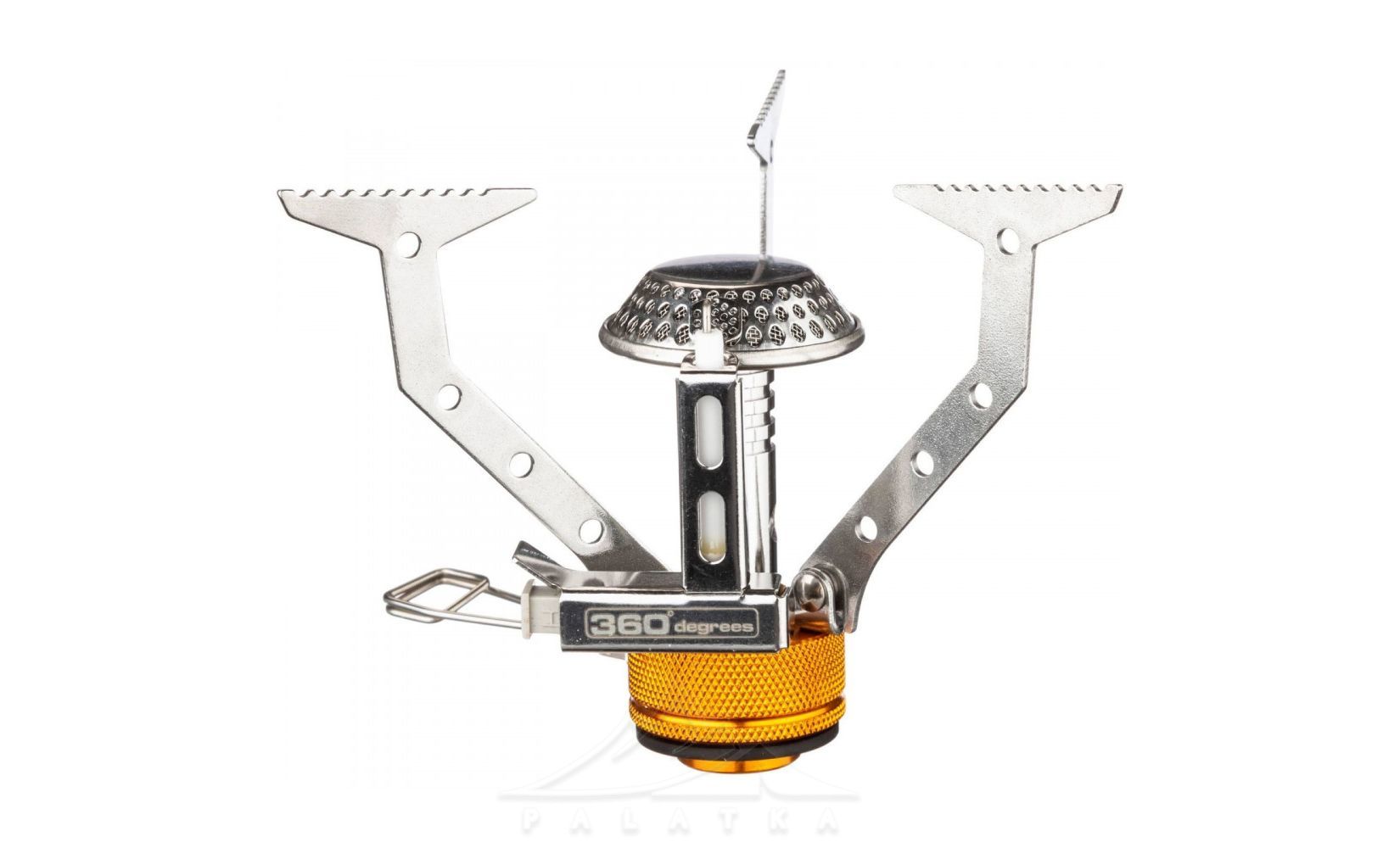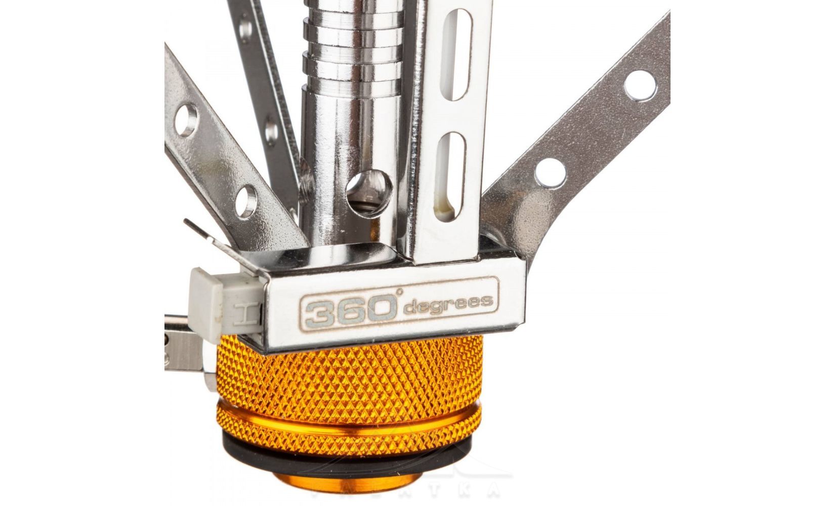360 Degrees Stove — дуже легкий і компактний пальник для різьбового балона. Він стане необхідним елементом в вашому інвентарі, якщо ви плануєте легко і зручно приготувати їжу або вскип'ятити воду в польових умовах. Дана модель оснащена п'єзопідпалом.