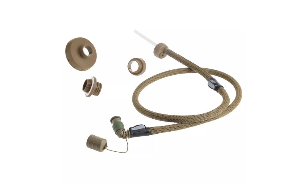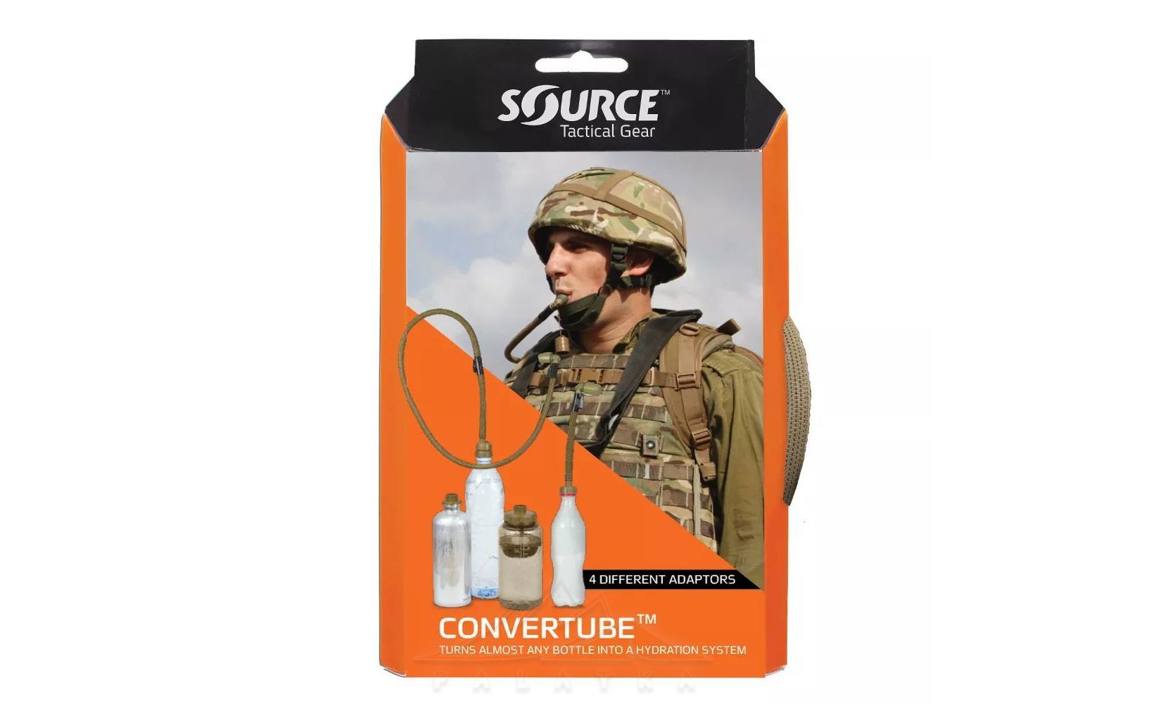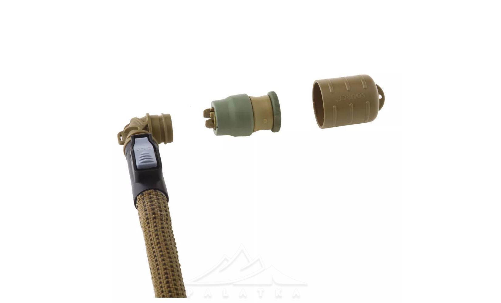 Source Convertube Military — це адаптер, який дозволяє використовувати практично будь-яку пляшку як гідратор. Трубка з кришкою під'єднується до пляшки, а м'який шланг з загубником виводиться на лямку вашого рюкзака.