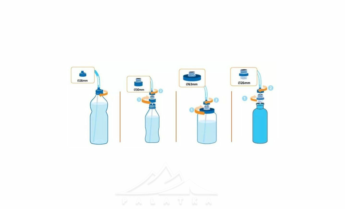 Source Convertube — це набір адаптерів, який дозволяє використовувати практично будь-яку пляшку як гідратор. Трубка з кришкою під'єднується до пляшки, а м'який шланг з загубником виводиться на лямку вашого рюкзака.