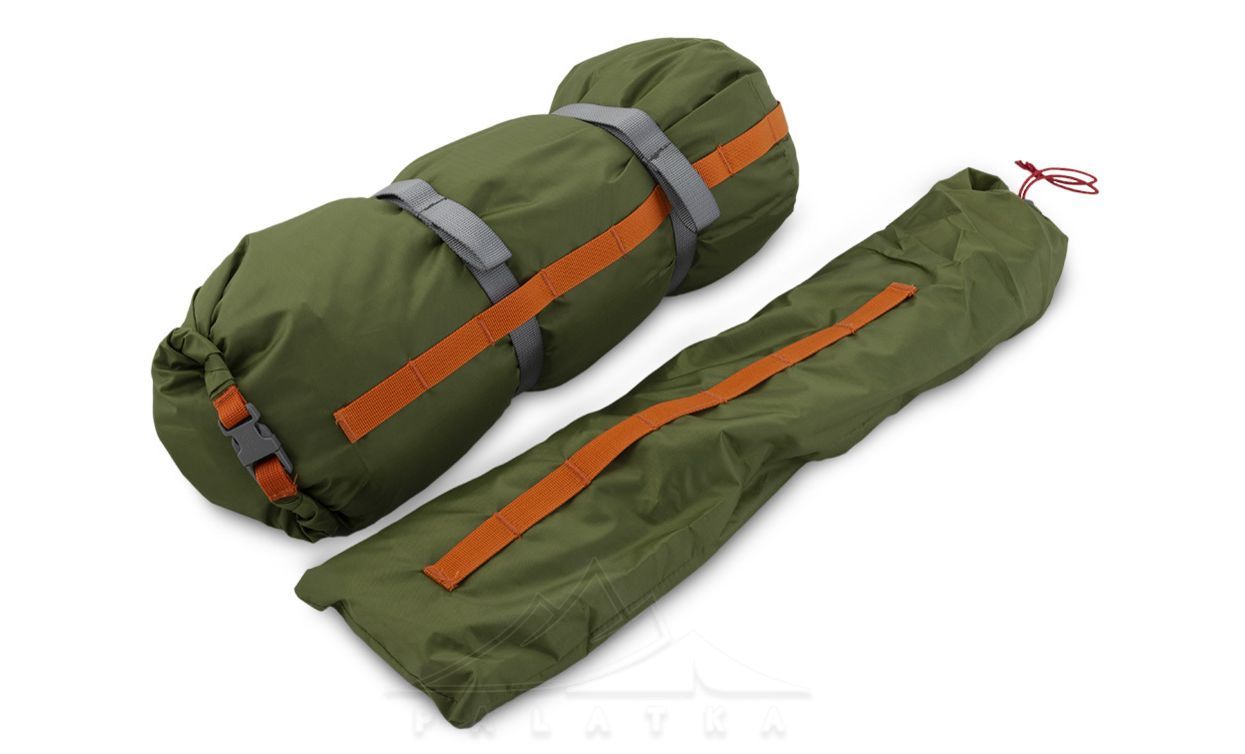 - Зовнішній тент з посиленого нейлону з силіконізацією, водостійкістю 4 000 мм H2O — еластичний, легкий, стійкий до розриву та впливу УФ-променів.