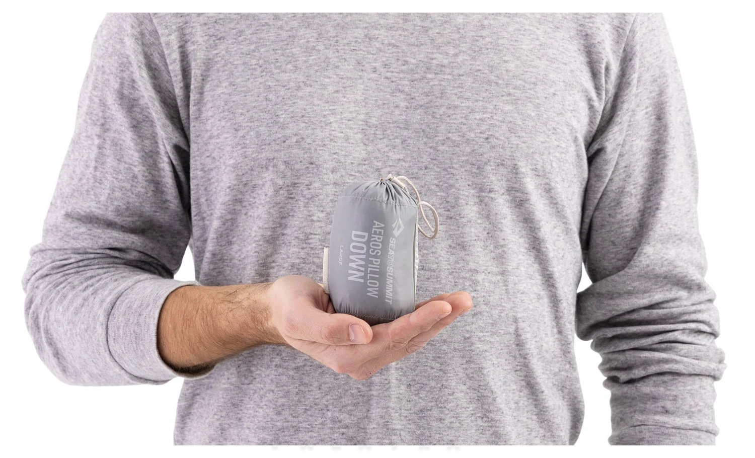 Туристична надувна подушка Sea to Summit Aeros Down підійде для трекінгу, походів, кемпінгу та подорожей, коли хочеться спати комфортніше, але без зайвого об’єму й ваги в спорядженні. Це вдалий варіант для тих, хто шукає не просто легку подушку, а м’якшу й приємнішу на дотик модель з кращою підтримкою голови вночі.