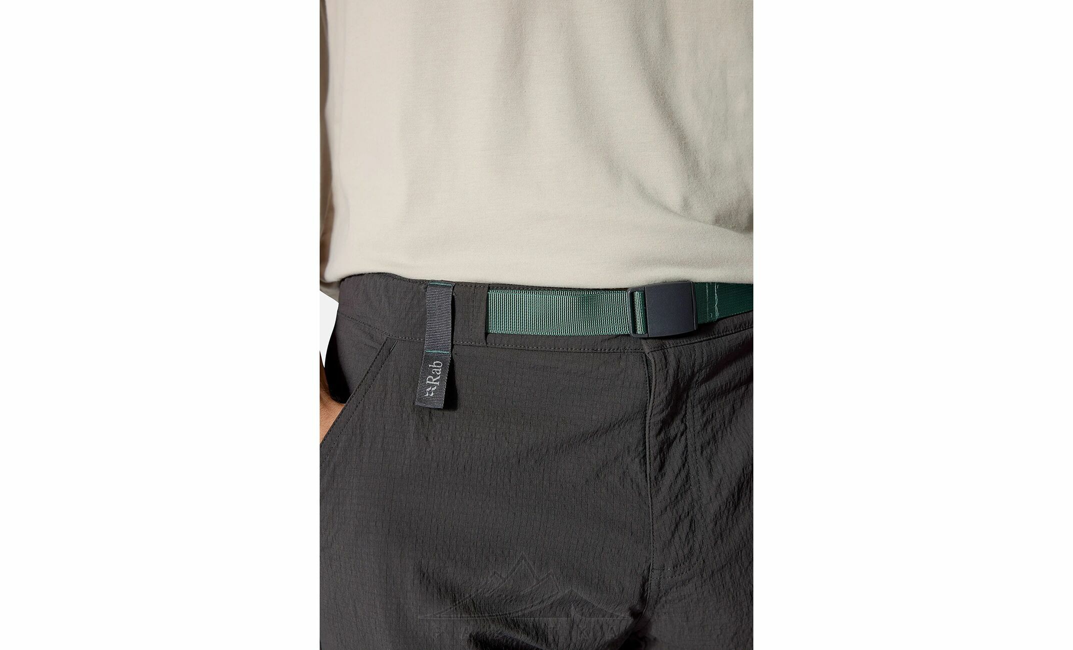 Rab Agden — легкі, міцні та еластичні чоловічі штани для літніх походів та активного відпочинку в горах. Стануть в нагоді під час тривалих прогулянок, сходжень по пересіченій місцевості та активних пригод у спекотну погоду.