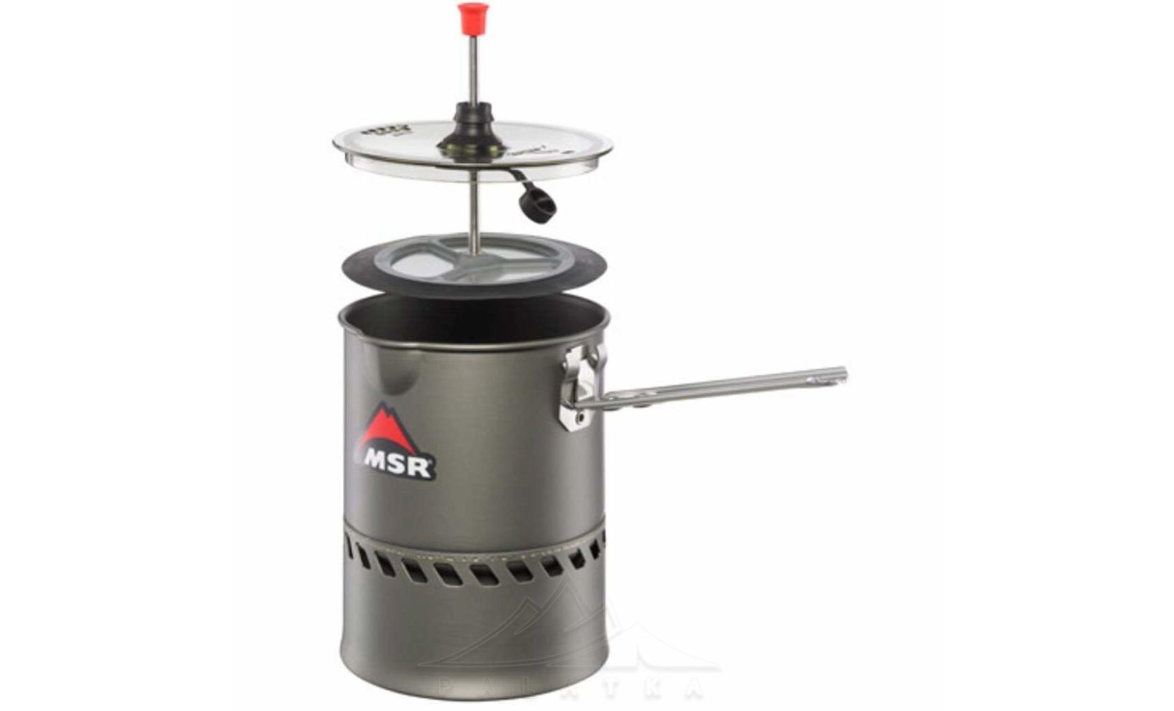 Прес для кави MSR Reactor Coffee Press Kit - сітка-фільтр для приготування кави або чаю у похідних умовах. Стрижень знімається з преса, що дозволяє закріпити на ньому кришку. Підходить до каструль MSR Reactor об'ємом 1,0 л.