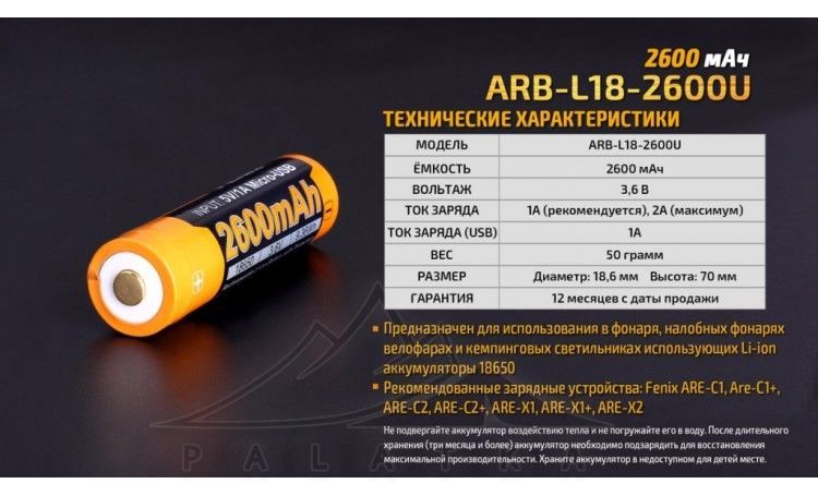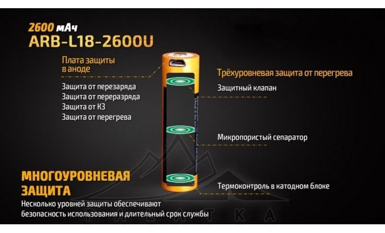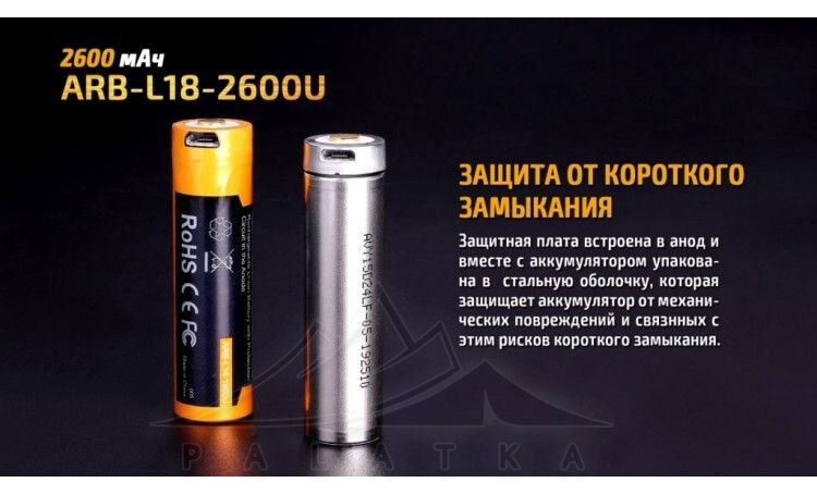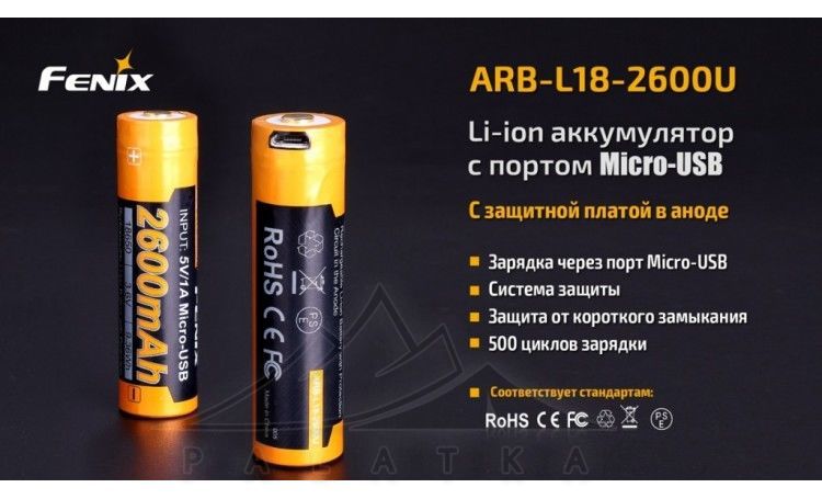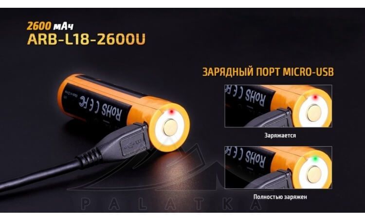 Акумулятор Fenix L18-2600U (18650) 2600 mAh — Micro USB - багаторазова літій іонна акумуляторна батарейка, яка забезпечить ваш прилад достатньою потужністю.