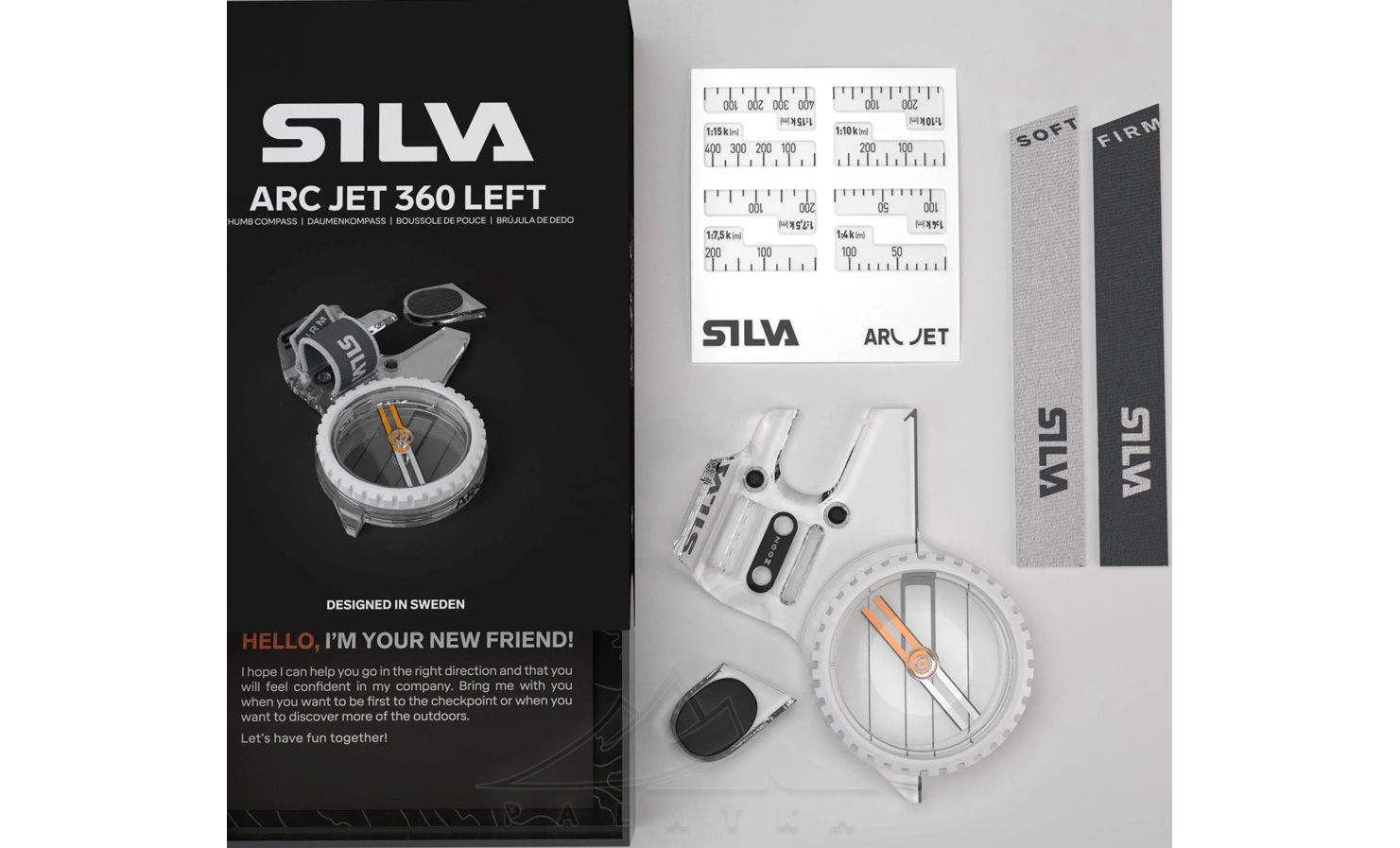 Компас Silva Orienteering Arc Jet 360 - Left — компас для великого пальця з корпусом, що обертається, призначений для орієнтування на місцевості.