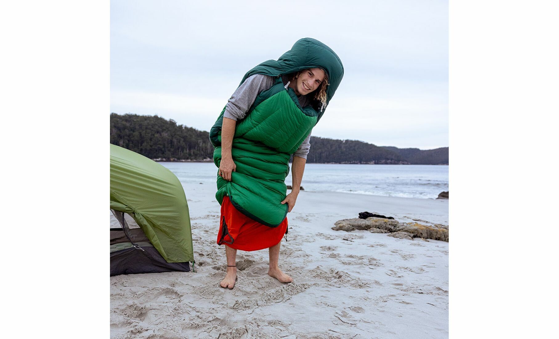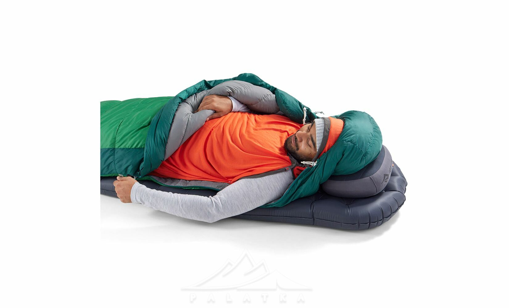 - Форма більш вільного кокона дає більше простору для рухів, тому спальник особливо зручний для тих, хто спить на боці або часто перевертається уві сні