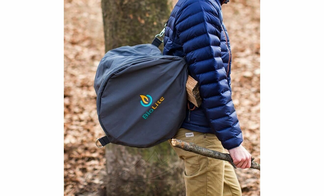 BioLite Carry Pack — міцна сумка-чохол із плечовим ременем, що стане практичним рішенням для безпечного зберігання та зручного транспортування портативної дров’яної пічки BioLite BaseCamp разом з аксесуарами.