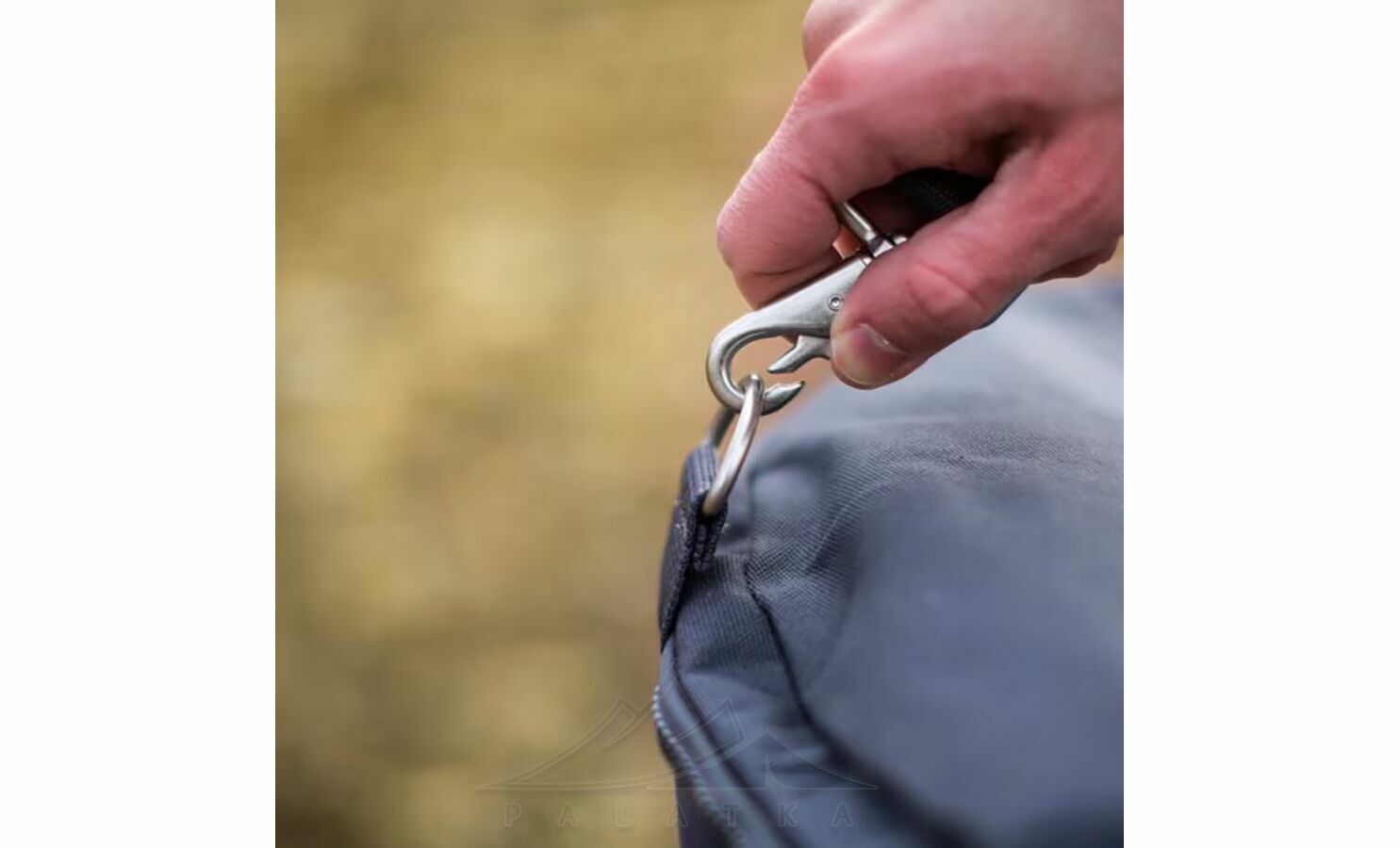 - Металевий гачок для фіксації надійно утримує верхній клапан і запобігає випадковому відкриванню під час транспортування.