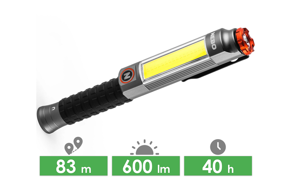 - Максимальна яскравість 600 люмен — хороший запас світла для роботи та повсякденного використання.