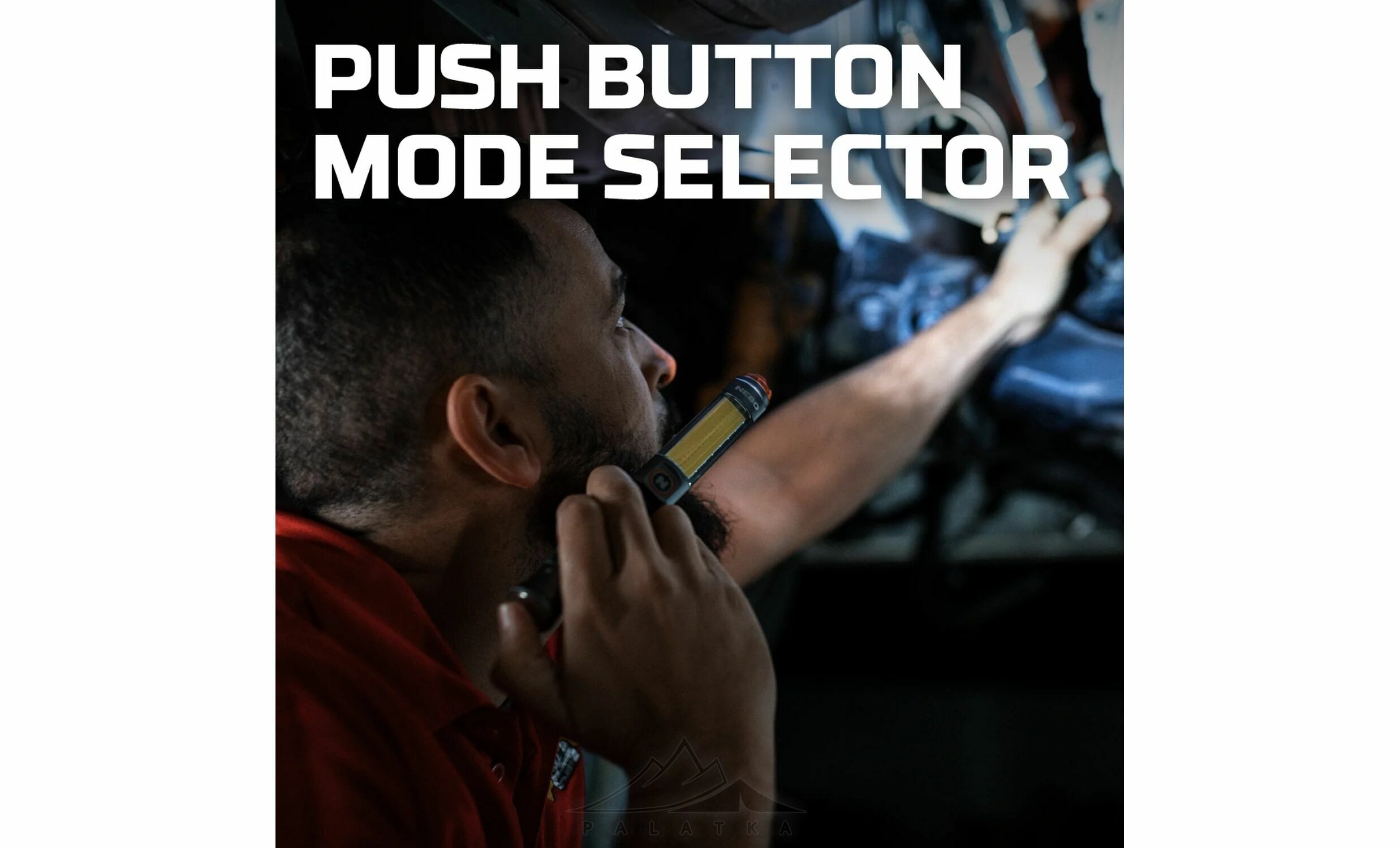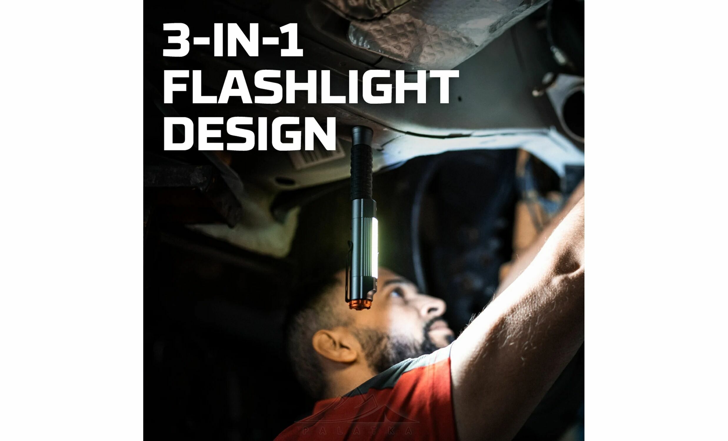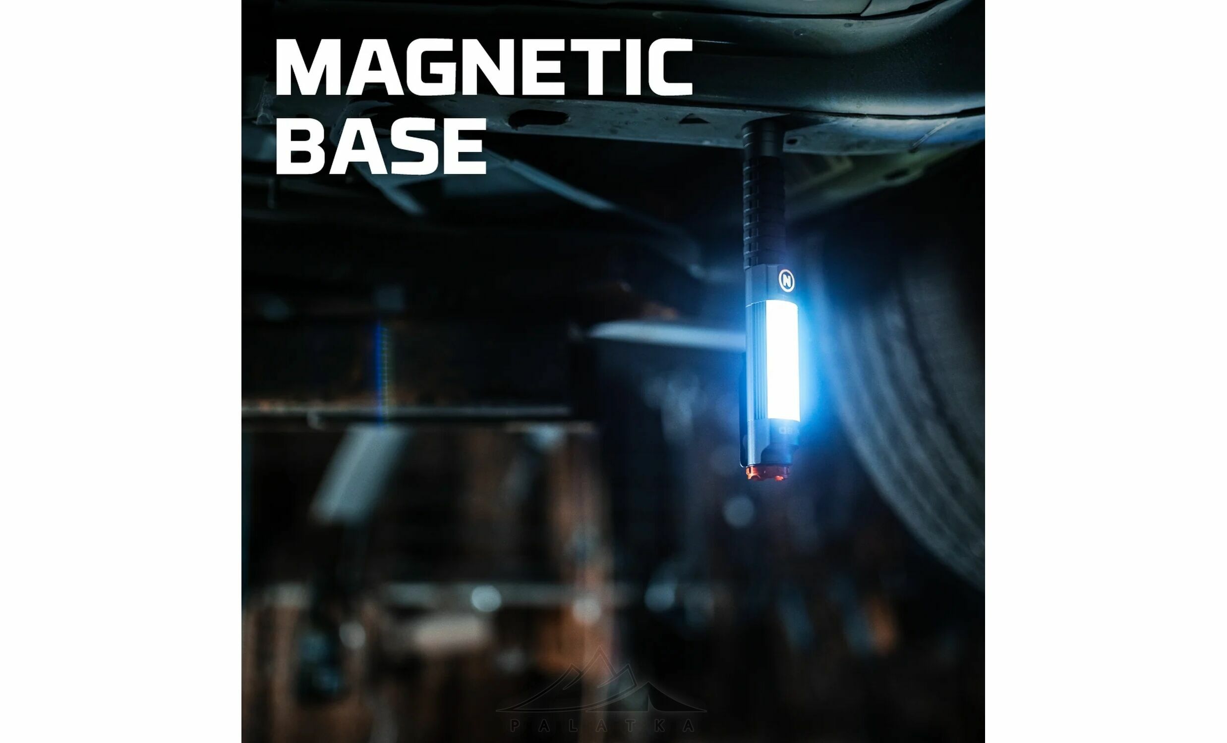 - Магнітна основа — можна зафіксувати ліхтар на металевій поверхні для роботи вільними руками.