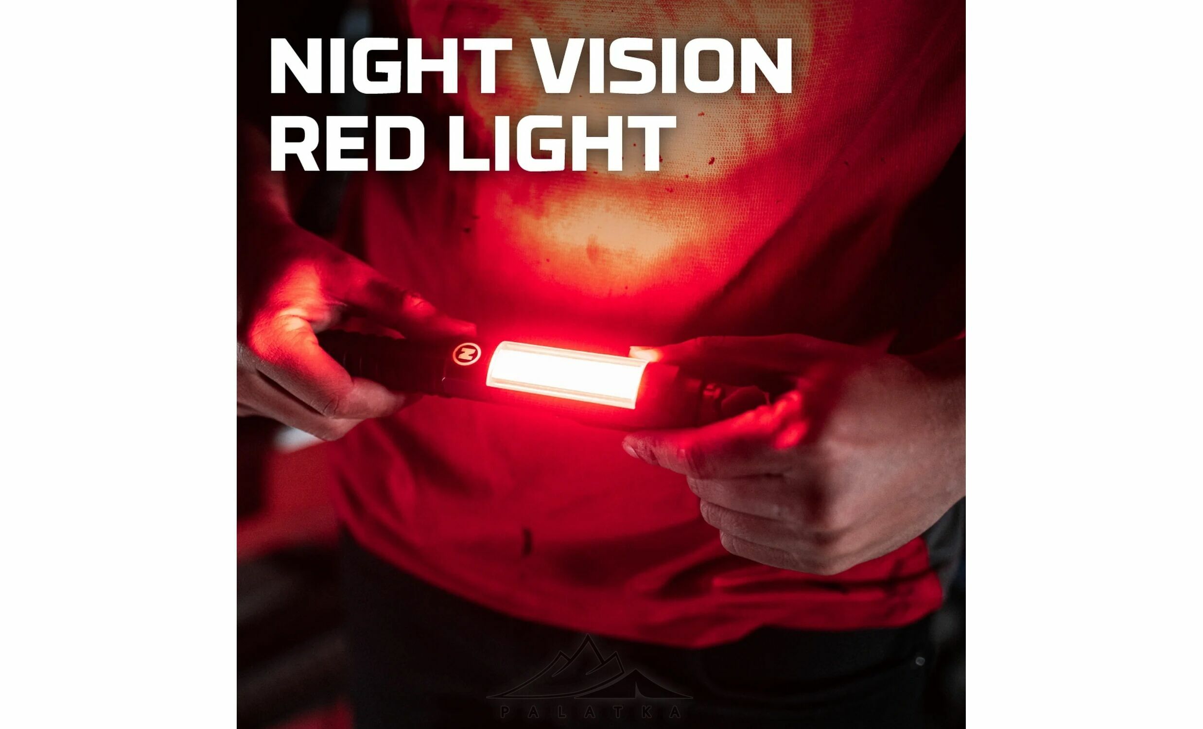 - 2 режими білого світла + червоне світло + червоний строб — можна підібрати режим під роботу, нічне користування або сигнальний сценарій.
