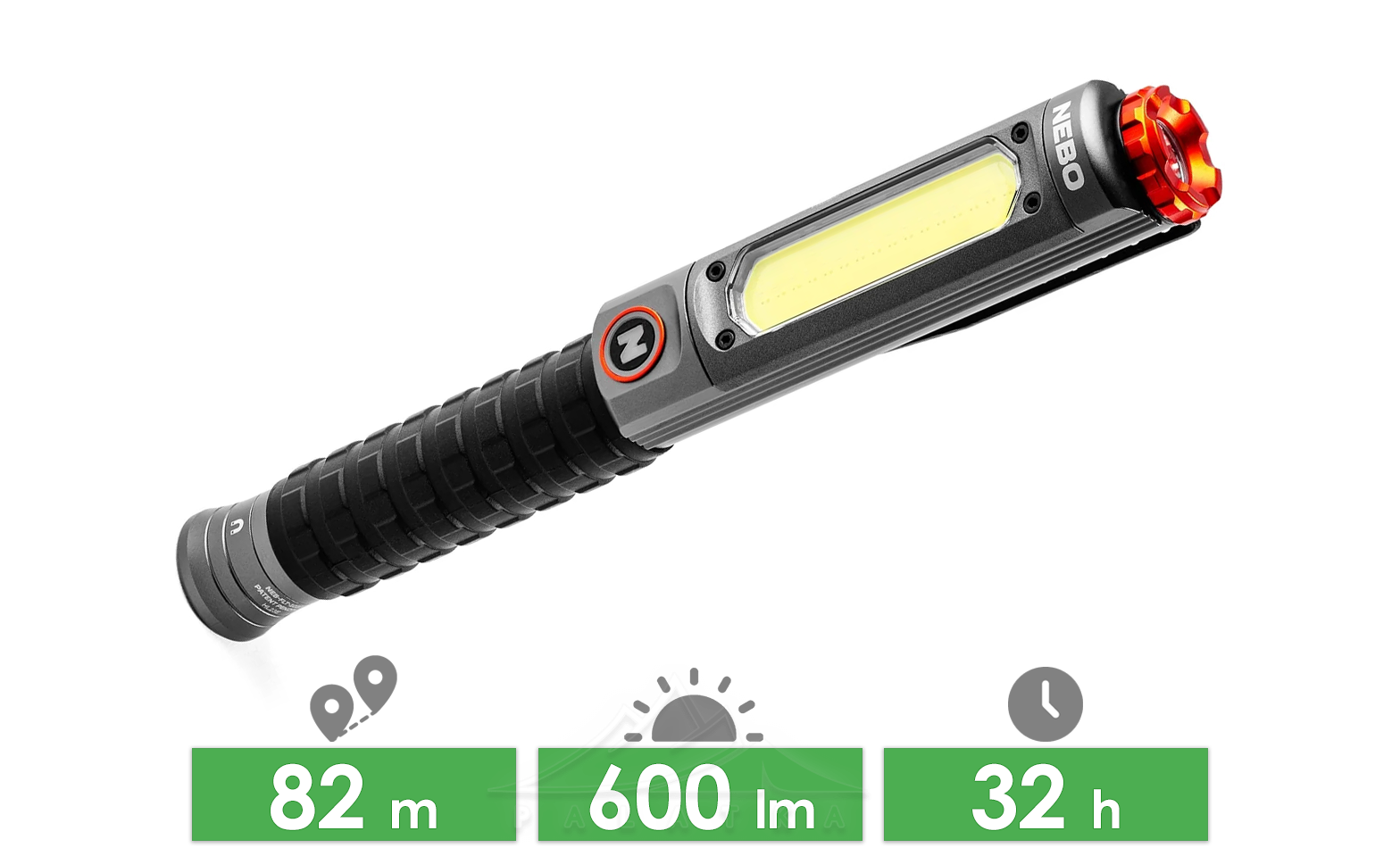 - Максимальна яскравість 600 люмен — хороший запас світла для роботи та повсякденного використання.