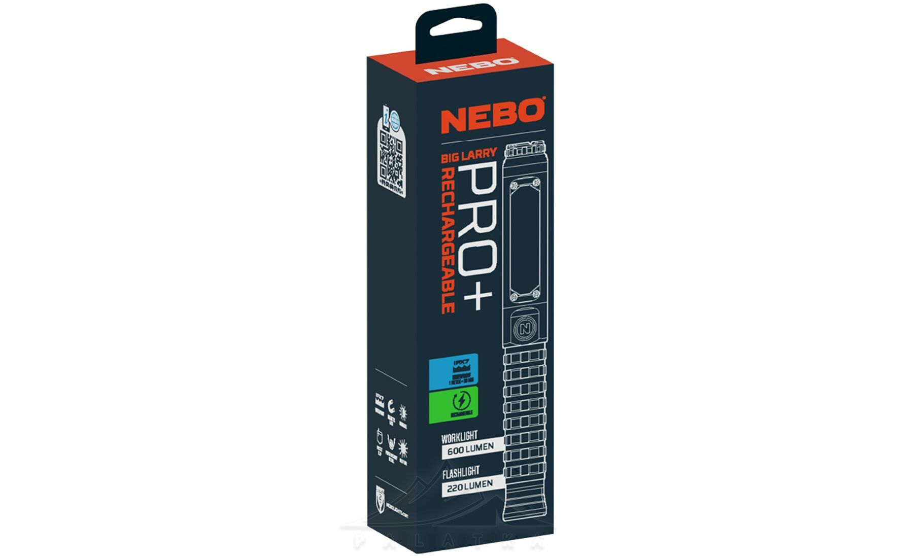 Ліхтар ручний Nebo Big Larry Pro + — універсальна модель для побутових задач, майстерні, авто та робіт, де зручно мати яскраве біле світло, червоне світло і можливість фіксації ліхтаря. Підійде тим, кому важливі магнітна основа, кліпса, металевий корпус і змінний акумулятор 18650 у комплекті. Ліхтар має порт USB Type-C для заряджання, плавне регулювання яскравості та захист IPX7.
