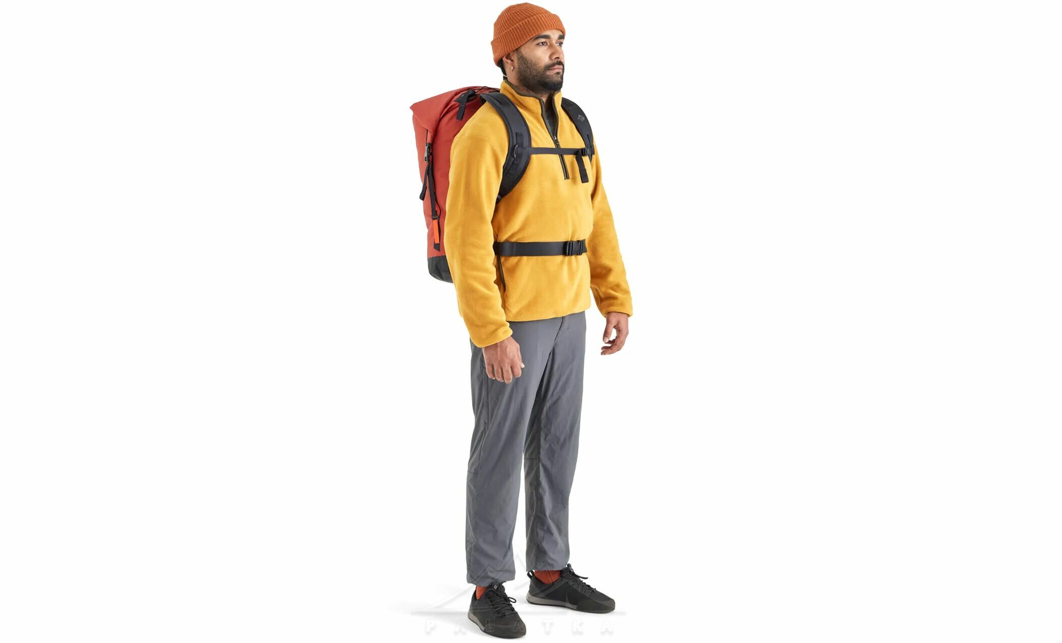 - Надійна застібка: система Hypalon Roll Top — закручування верхньої частини з фіксацією на фастекс та додатковою пряжкою для щільного ущільнення.