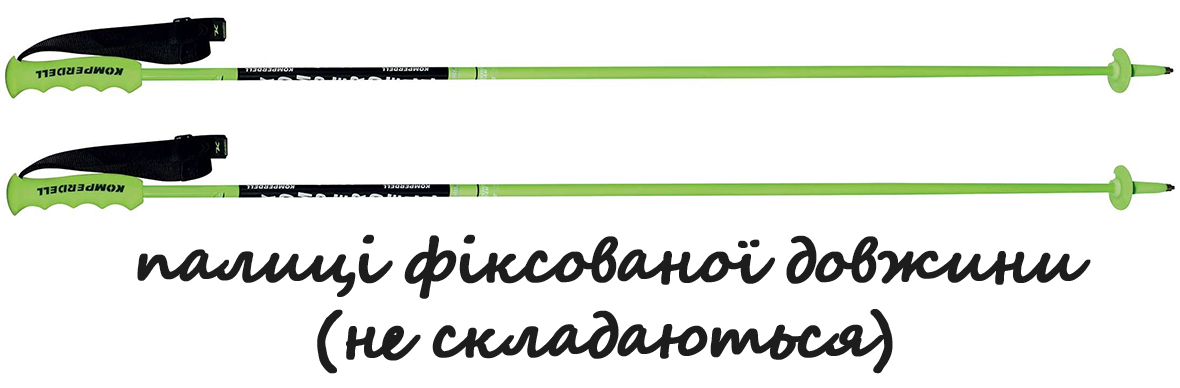 - Неможливість регулювання: Висота палиці не може бути змінена, що може стати незручністю при різних умовах (наприклад, підйоми або спуски).