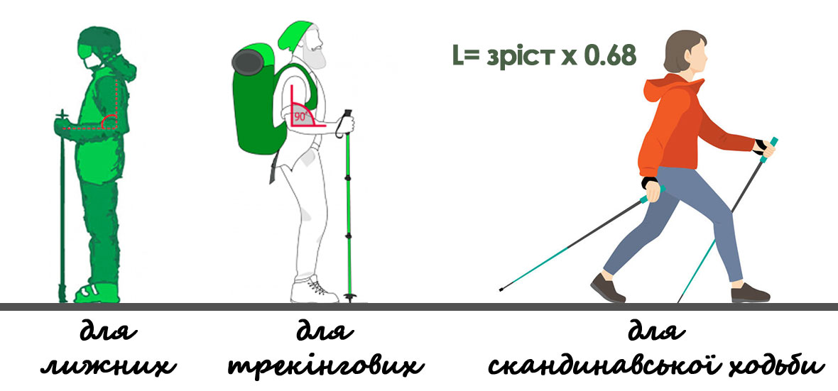Для скандинавської ходьби важливий точний розрахунок довжини палиць, адже це впливає на техніку. Щоб підібрати правильний розмір, користуються такою формулою: зріст людини множать на коефіцієнт 0,68. Це базовий спосіб визначення довжини, але можна також орієнтуватися на свої відчуття під час ходьби. Важливо, щоб палиці не були надто короткими або довгими, адже це призведе до неправильного навантаження на м'язи рук і плечей. Деякі виробники пропонують моделі з фіксованою довжиною, що оптимально для людей, які чітко знають свою правильну довжину палиць, або з регульованими моделями для універсальності