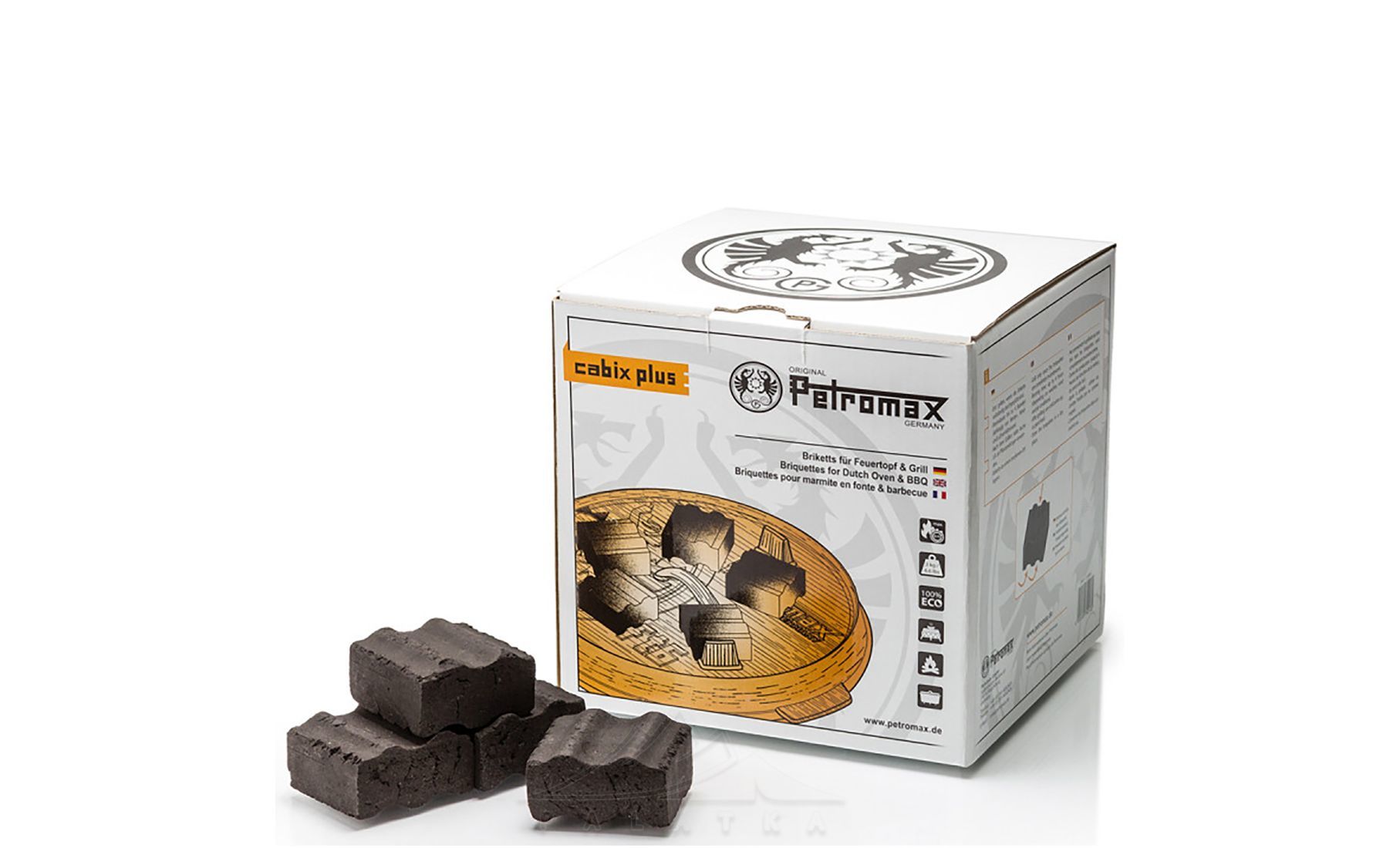 Petromax Cabix Plus Briquettes for Dutch Oven and BBQ — вугільні брикети з натуральної сировини, що можуть використовуватись з чавунними казанами-жаровнями Petromax та для BBQ. Також підходять як пальне для портативних мангалів, грилів та для печей.