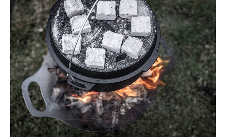 - Для рівномірного прогріву розкладіть брикети під дно посуду та на кришку.
