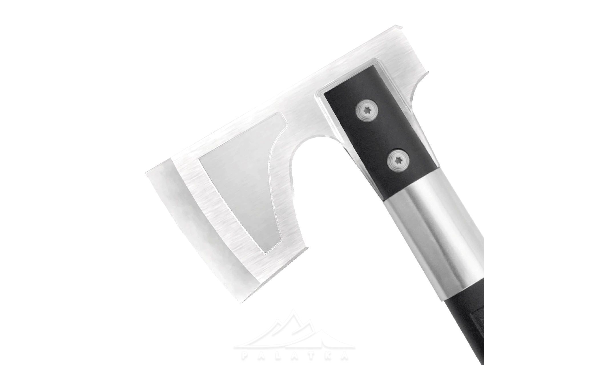 - Лезо сокири з нержавіючої сталі (твердість Rc. 51-52), легко піддається заточці.