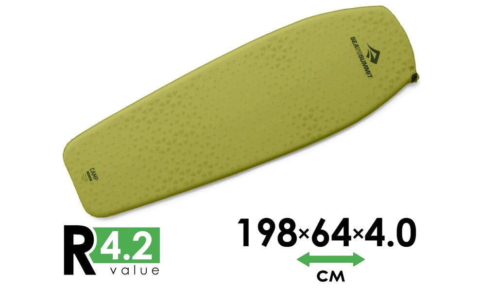 Самонадувний каремат Sea to Summit Camp підійде для кемпінгу, автокемпінгу, водних мандрівок і нескладних піших виходів, коли хочеться отримати більше комфорту під час сну без зайвих складнощів з використанням. Це вдалий варіант для тих, хто шукає зручний і надійний килимок із хорошою теплоізоляцією, простим самонадуванням і більш практичним форматом для регулярних виїздів.
