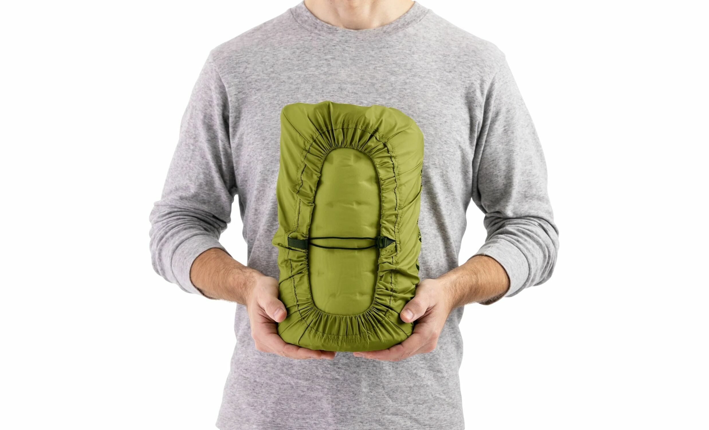 - Бокове завантаження в чохол робить пакування простішим і зручнішим, бо не потрібно довго втискати згорнутий каремат у вузький мішок