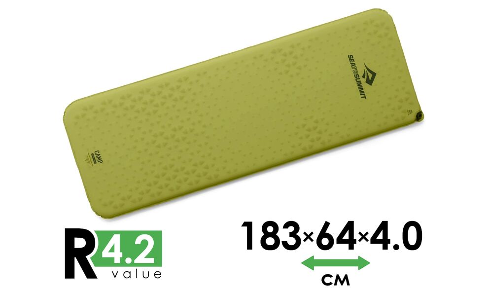 Самонадувний каремат Sea to Summit Camp підійде для кемпінгу, автокемпінгу, водних мандрівок і нескладних піших виходів, коли хочеться отримати більше комфорту під час сну без зайвих складнощів з використанням. Це вдалий варіант для тих, хто шукає зручний і надійний килимок із хорошою теплоізоляцією, простим самонадуванням і більш практичним форматом для регулярних виїздів.