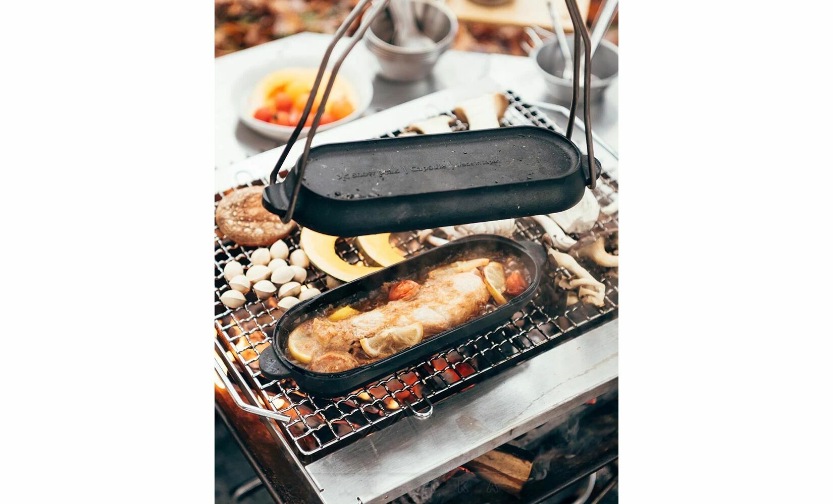 Snow Peak CS-502R Micro Capsule — чавунна жаровня посуд преміум-класу, виготовлена у Японії. Ідеально підходить для приготування різноманітних страв — від рагу й тушкованого м’яса до хліба чи овочів — на відкритому вогні, плиті або в духовці. Універсальне рішення для кемпінгу, пікніків або домашнього використання.