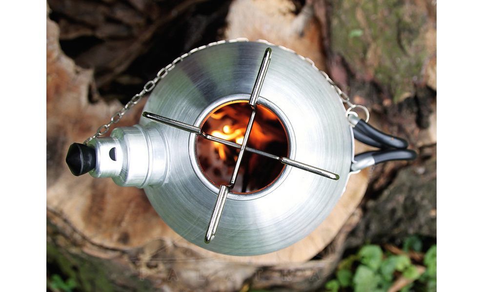 - Чаша-пальник з трьома знімними ніжками слугує міцною та стійкою опорою конструкції, що дозволяє безпечно встановлювати на неї чайник. Ви також можете використовувати Fire Kettle без ніжок, але так він може залишити сліди обгорілої поверхні на землі.