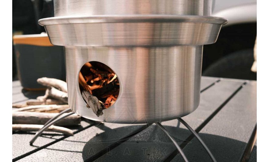 - Чаша-пальник з трьома знімними ніжками слугує міцною та стійкою опорою конструкції, що дозволяє безпечно встановлювати на неї чайник. Ви також можете використовувати Fire Kettle без ніжок, але так він може залишити сліди обгорілої поверхні на землі.