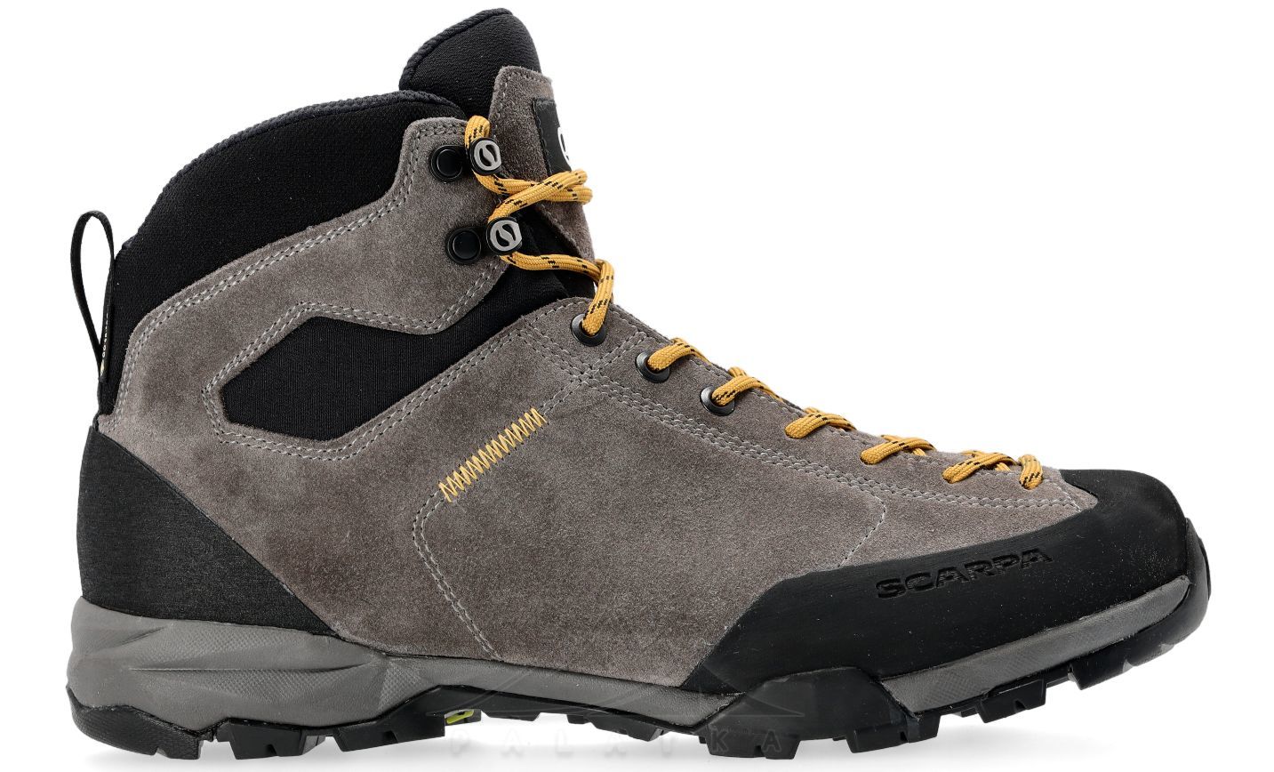 Scarpa Mojito Hike GTX — легкі черевики з м'якої водостійкої замші. Призначені для швидких походів по змішаній місцевості з легкими рюкзаками, гірських прогулянок та подорожей.