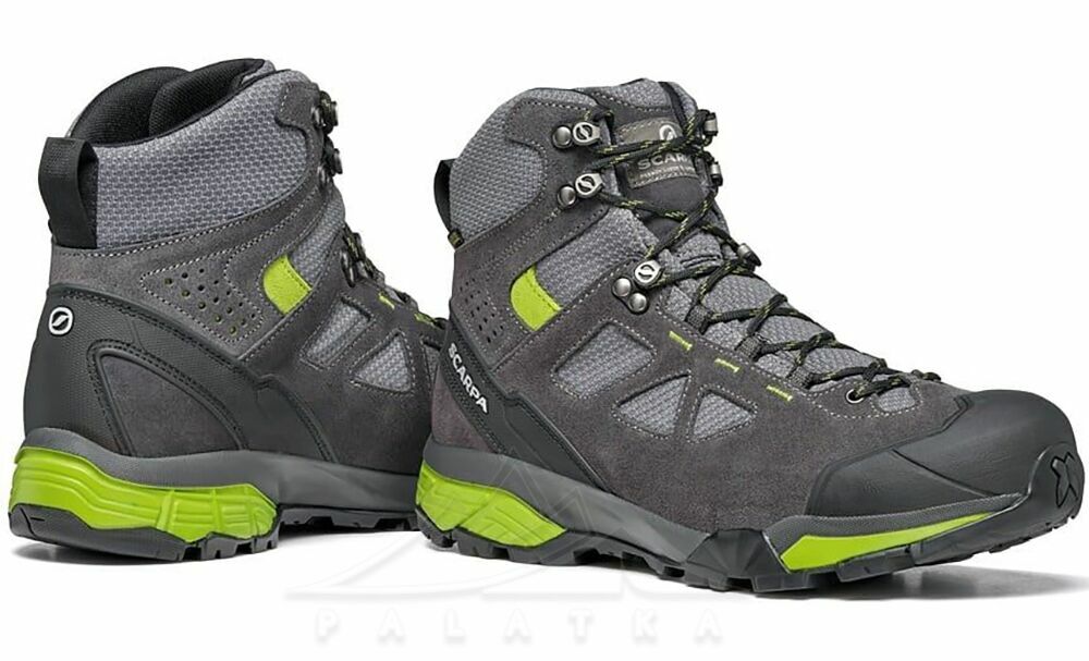 Scarpa ZG Lite GTX — міцні чоловічі трекінгові черевики з технічної тканини та водостійкої замші. Підійдуть для ґрунтових доріжок, гірських прогулянок і швидкого туризму з невеликим навантаженням.