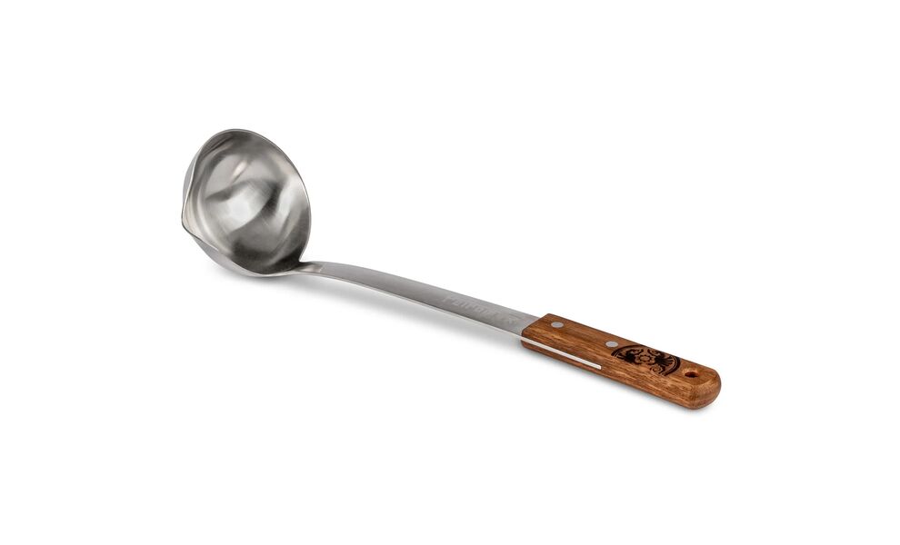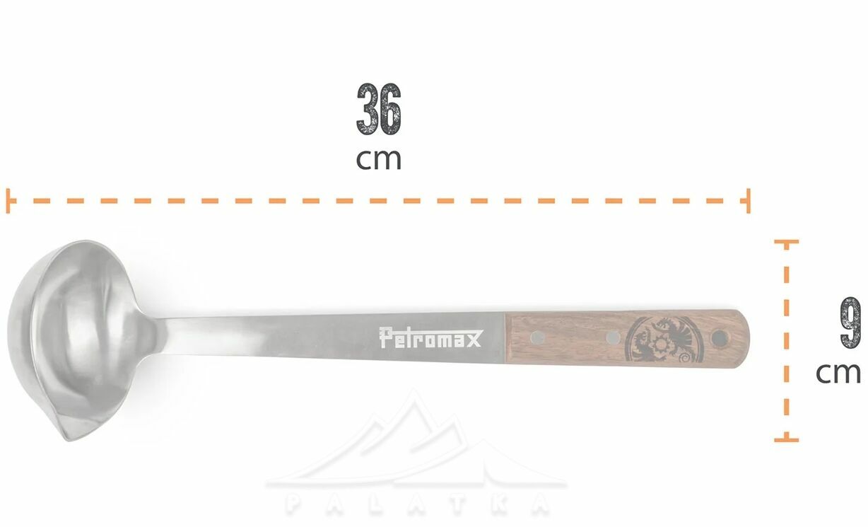 Petromax Ladle — черпак з ручкою середньої довжини, виготовлений з нержавіючої сталі та горіхового дерева. Стане в нагоді для подачі супів та рагу. Підійде для кемпінгової та домашньої кухні.