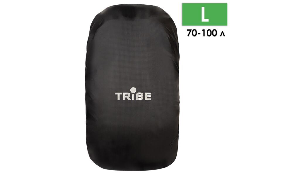 Дощовик на рюкзак Tribe Raincover — забезпечує водонепроникність завдяки тканині Ripstop 95 г/м2 з поліуретановим покриттям та показником водонепроникності 4000 мм H2O.
