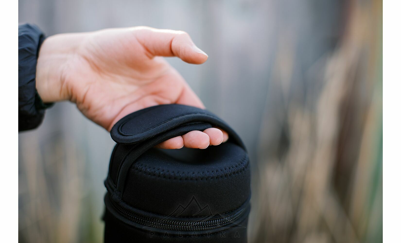 - Кришка чохла застібається на блискавку, яка гарантує швидкий доступ до термоса.