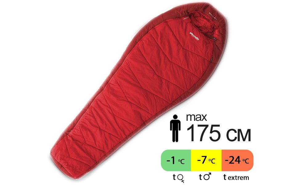 • Форма: класична «мумія» з анатомічним капюшоном на стяжці — допомагає зберігати тепло всередині спальника та краще адаптується до форми тіла.