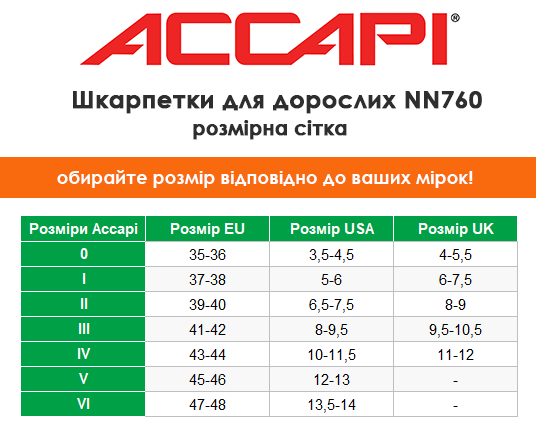 таблиця розмірів шарпеток Accapi