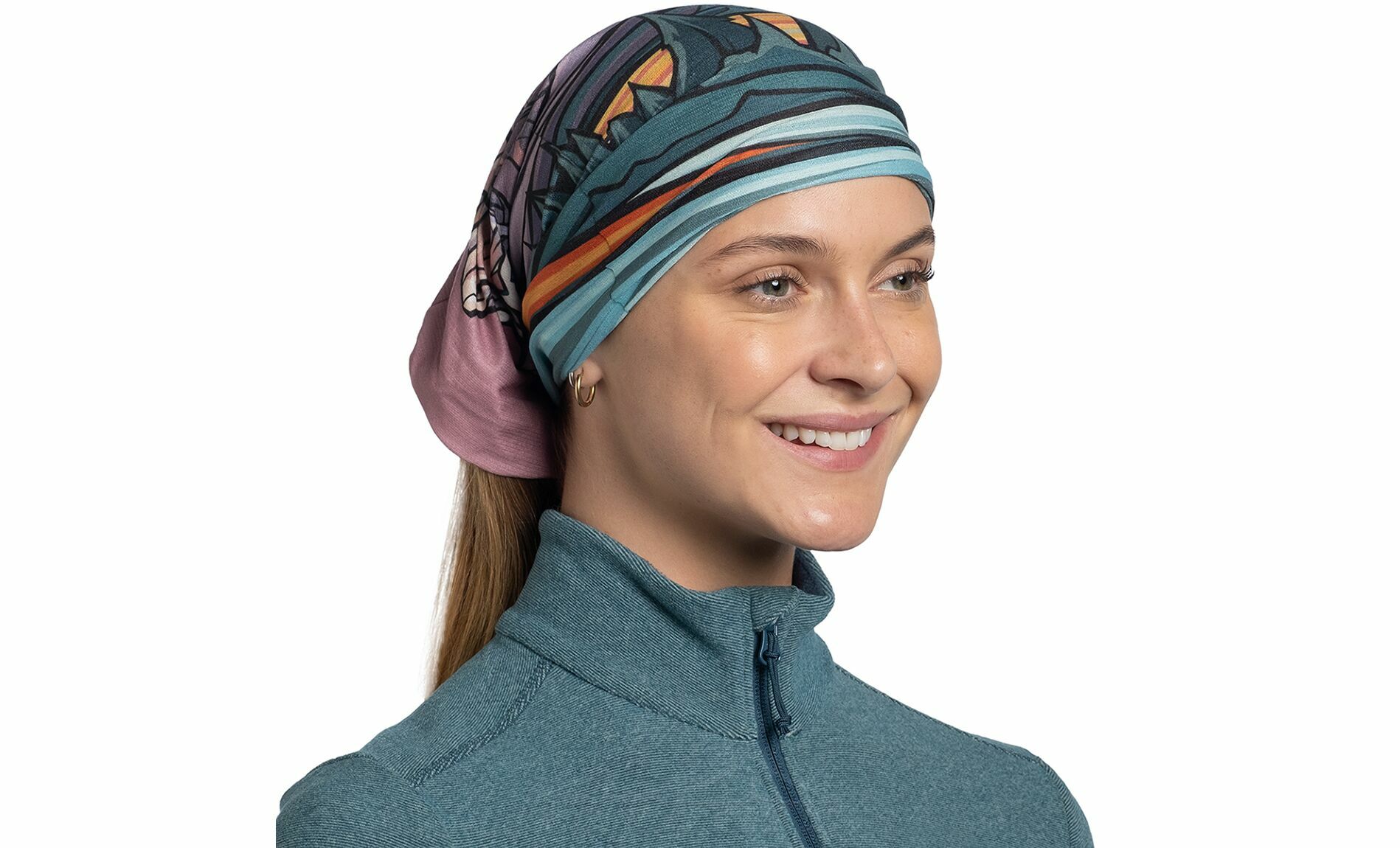 Такий шарф можна носити ще й як спортивну шапку, пов'язку на голову, маску та навіть підшоломник! Це дійсно дуже зручно — мати можливість швидко пристосуватися під змінні погодні умови і при цьому не таскати з собою півшафи :)