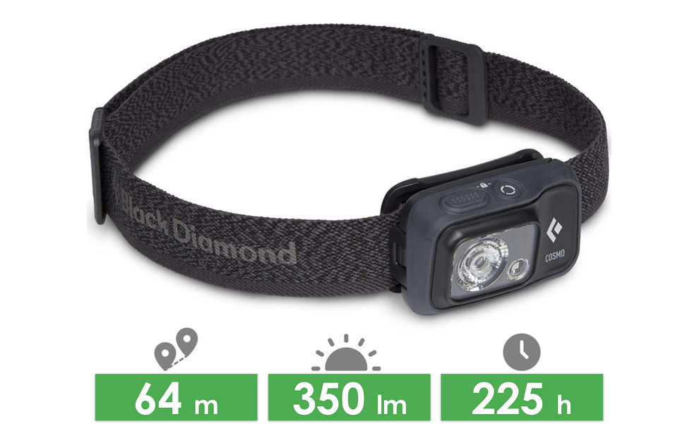 Black Diamond Cosmo 350 — функціональний налобний ліхтар з плавним регулюванням яскравості. Для використання у якості основного освітлення, та для нічного бачення. Універсальна модель для походів, кемпінгу, риболовлі, спорту або домашнього користування.