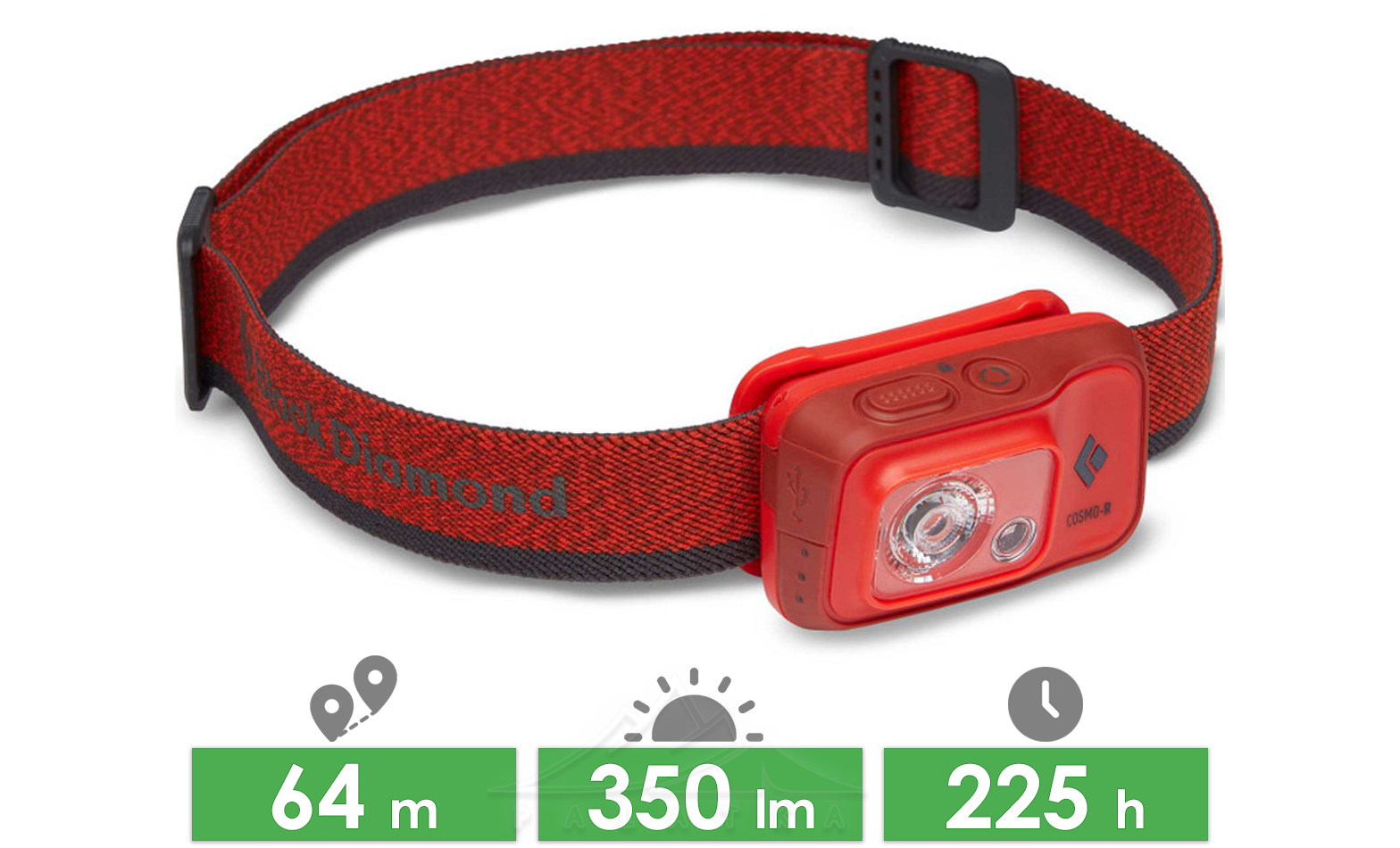 Black Diamond Cosmo 350 — перезаряджаємий функціональний налобний ліхтар з плавним регулюванням яскравості. Для використання у якості основного освітлення, та для нічного бачення. Універсальна модель для походів, кемпінгу, риболовлі, спорту або домашнього користування.