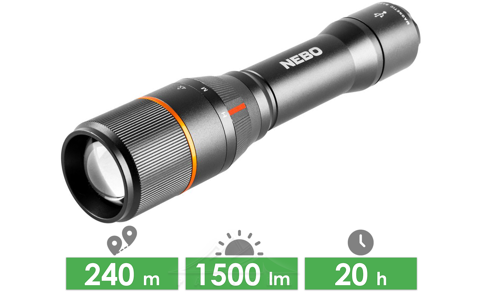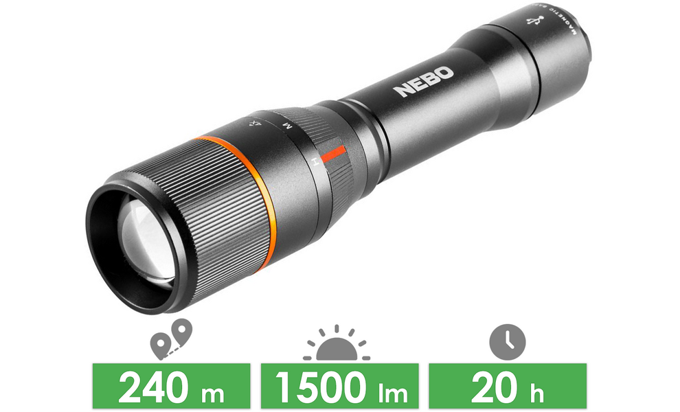 Ліхтар ручний Nebo Davinci 1500 — перезаряджаємий ліхтар з 4-кратним зумом та магнітною основою. Витримує до 20 годин роботи без підзарядки, тому стане ефективним для тривалого використання.