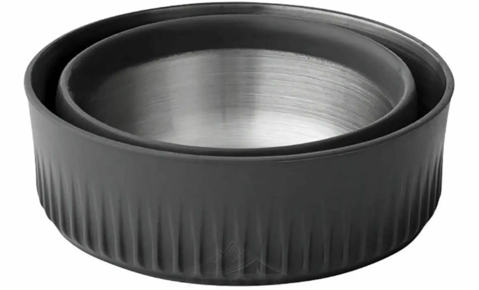- Виготовлений з комбінації гнучкого харчового силікону (зовнішні стінки), та високоміцної нержавіючої сталі 304 (основа), що забезпечує довговічність посуду, cтійкість до механічних пошкоджень, корозії, і легко очищується.