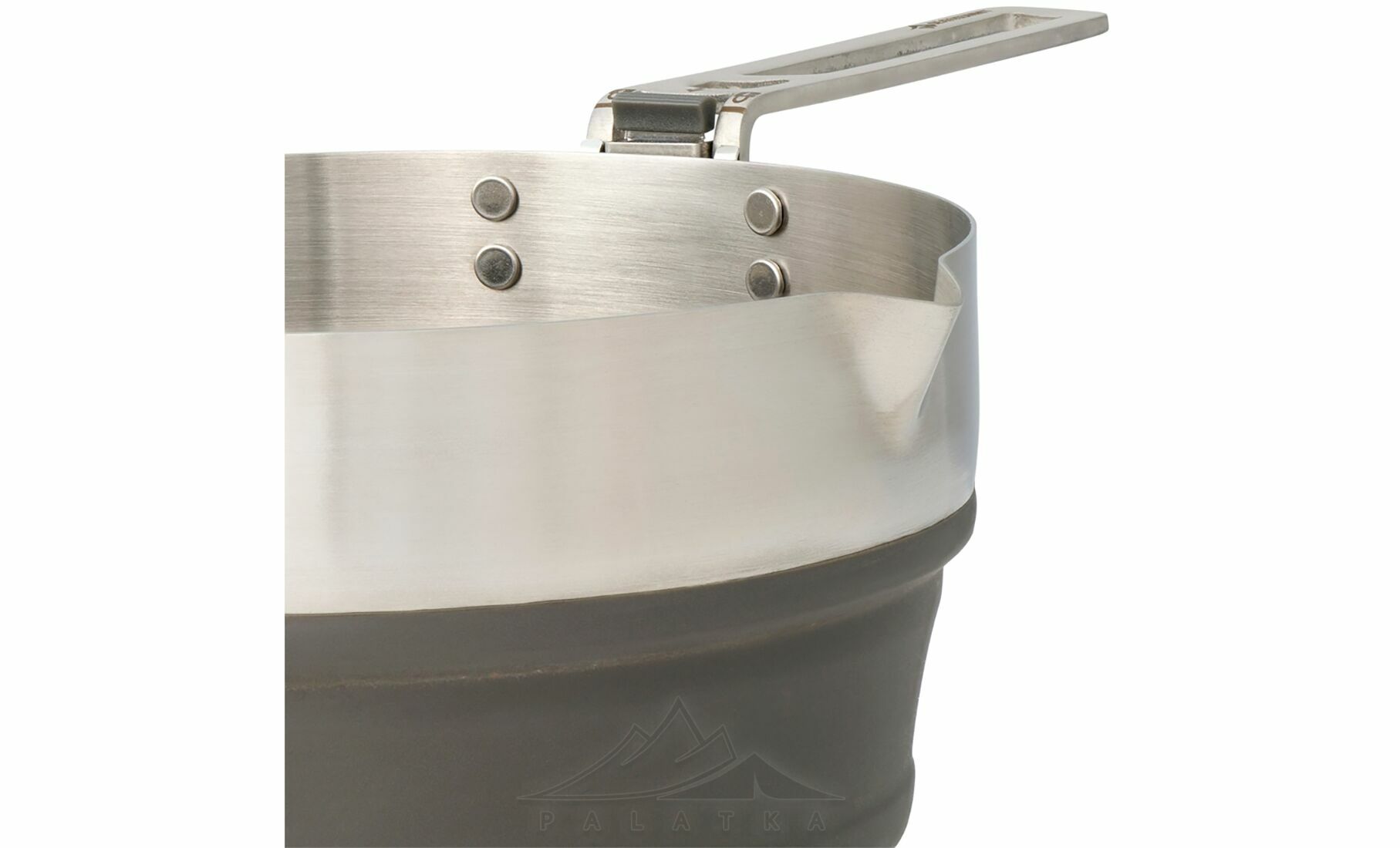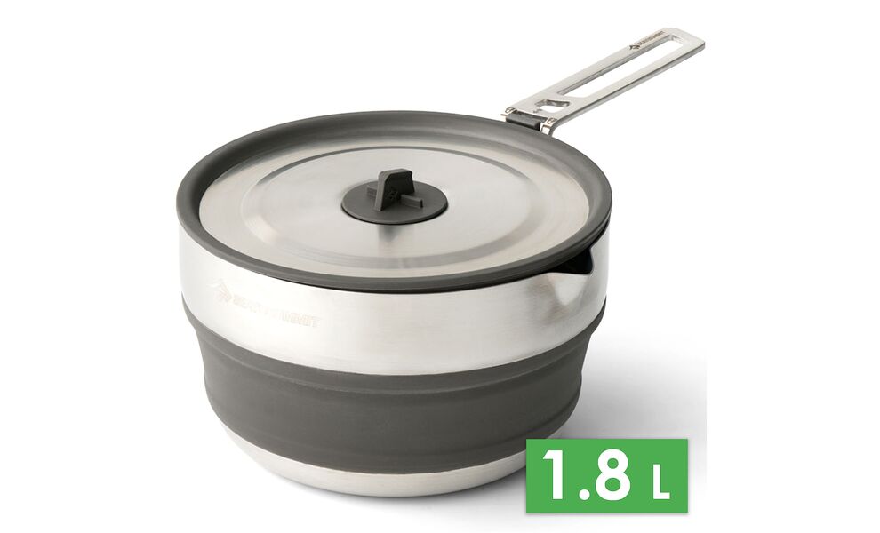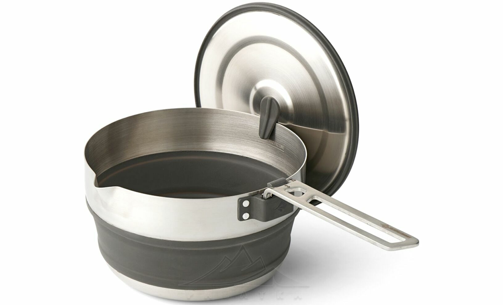 Detour Stainless Steel Collapsible Pouring Pot — універсальна складна каструля з нержавіючої сталі та cилікону з тришаровим дном, що працює на електричних, газових та індукційних плитах. Стане в нагоді для туристів, які беруть з собою туристичну їжу в пакеті.