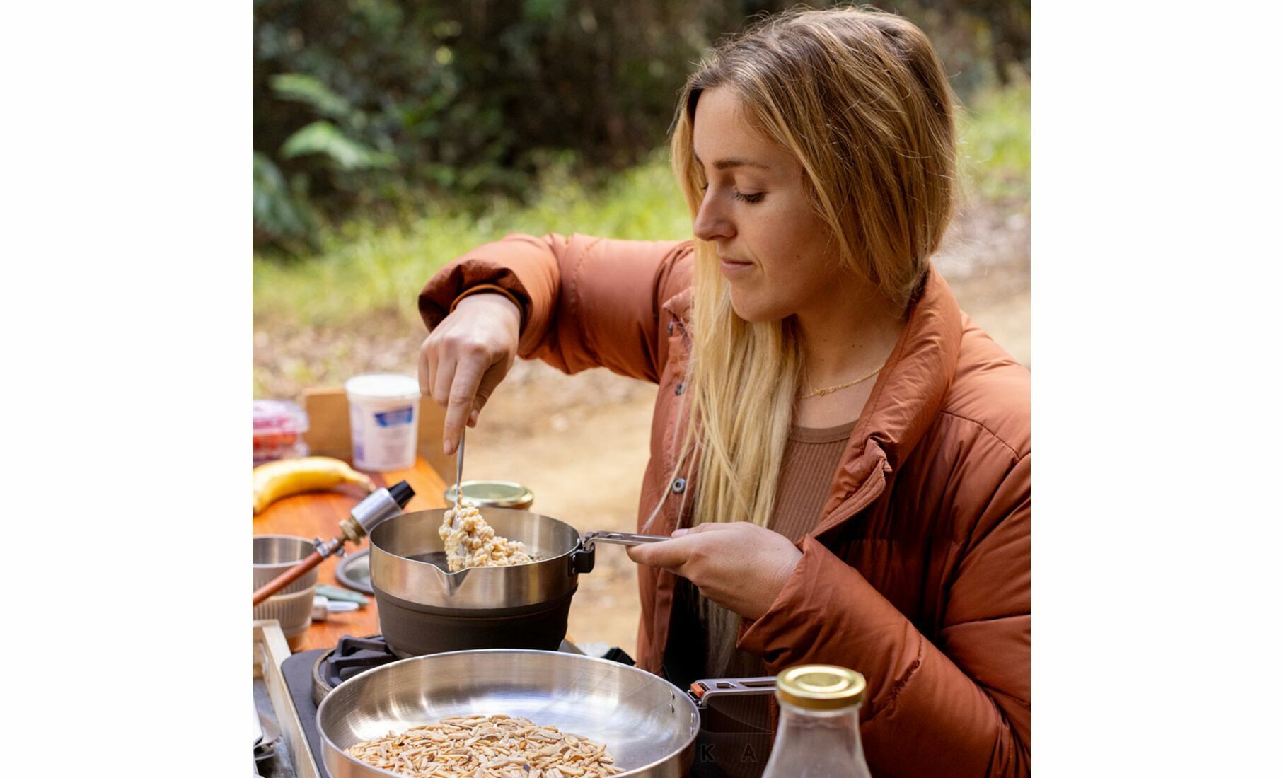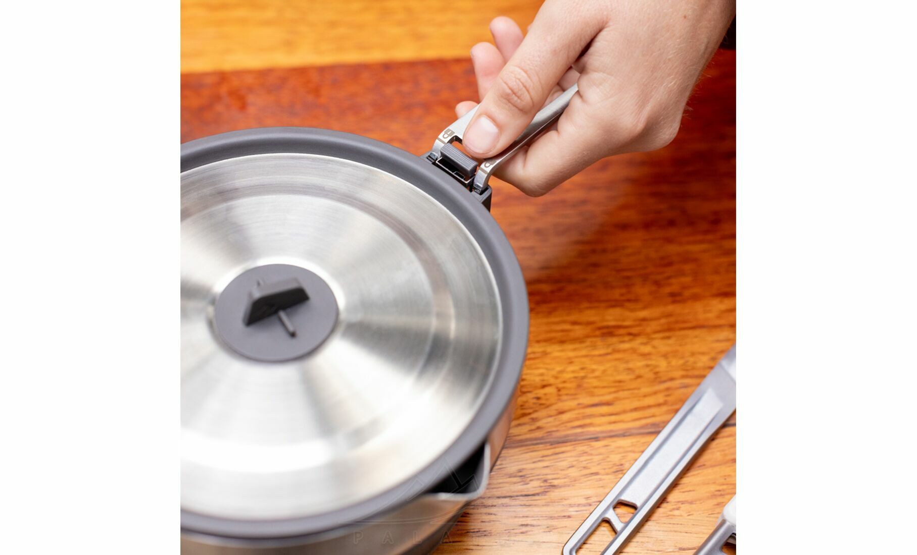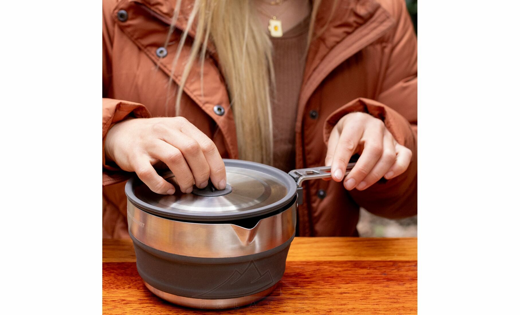 Detour Stainless Steel Collapsible Pouring Pot — універсальна складна каструля з нержавіючої сталі та cилікону з тришаровим дном, що працює на електричних, газових та індукційних плитах. Стане в нагоді для туристів, які беруть з собою туристичну їжу в пакеті.