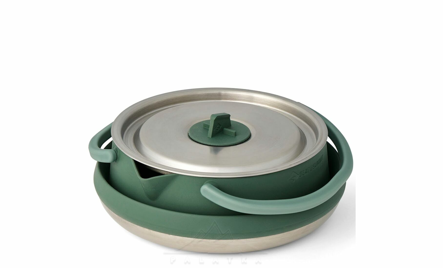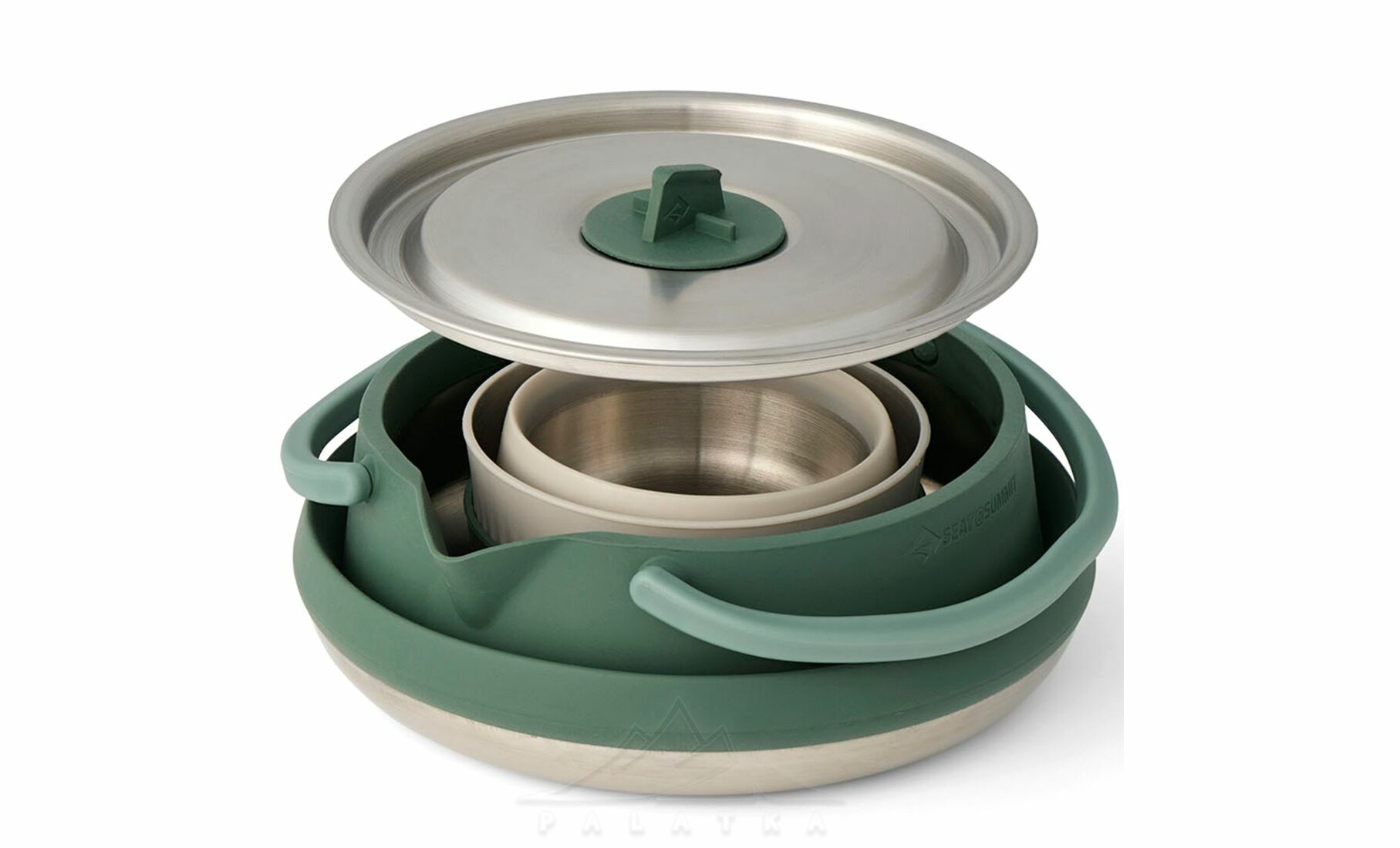 Sea to Summit Detour Stainless Steel Kettle Cook - Set 3P — функціональний набір посуду із нержавіючої сталі та термостійкого силікону з інноваційним дизайном — найміцніший у лінійці складного посуду Sea to Summit. Розрахований на 2 особи, та ідеально підходить для кемпінгу, автоподорожей, і відпочинку на природі.
