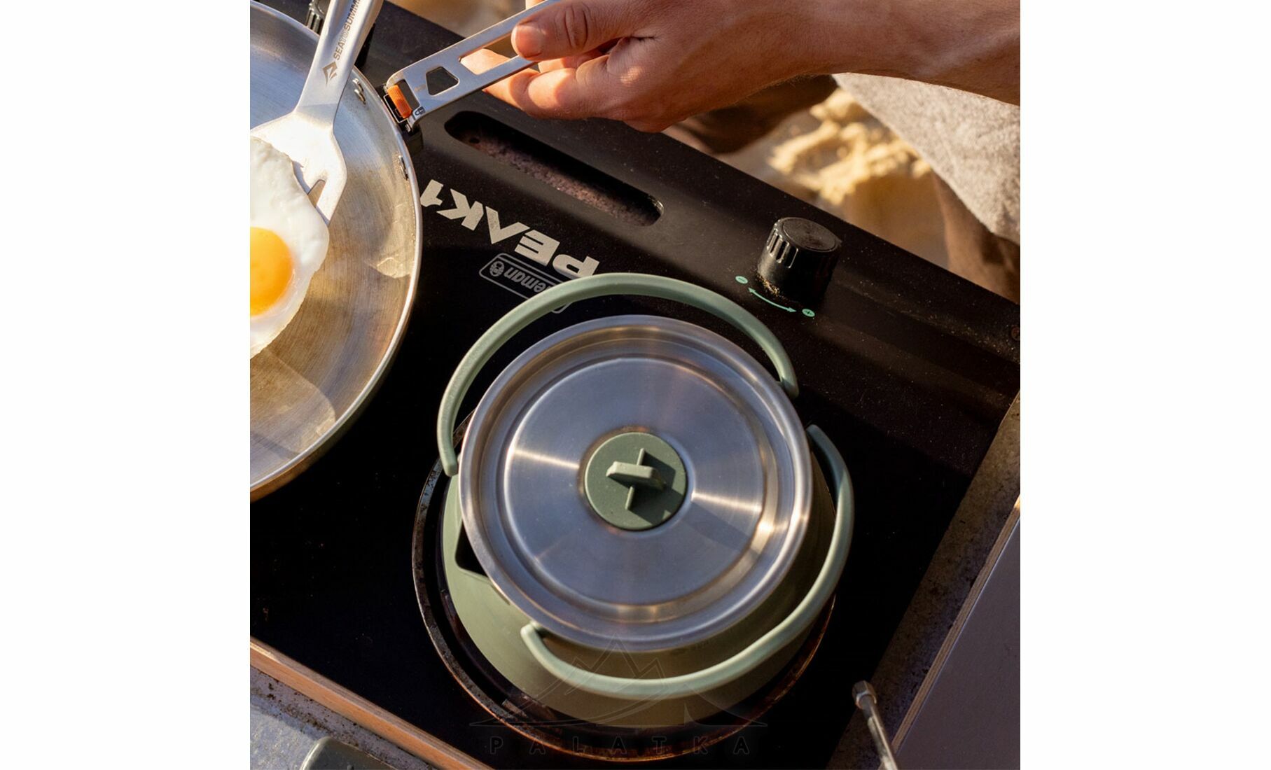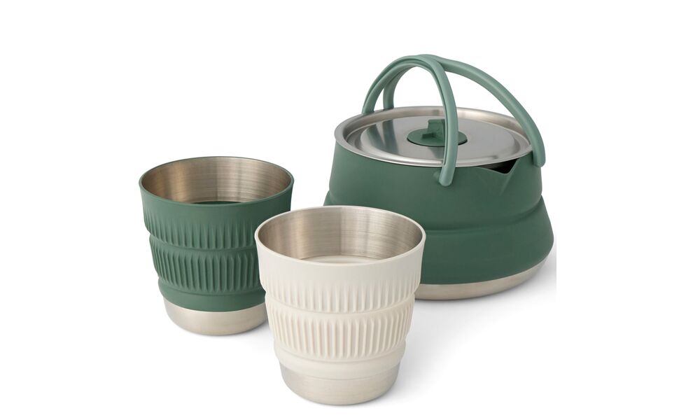 Sea to Summit Detour Stainless Steel Kettle Cook - Set 3P — функціональний набір посуду із нержавіючої сталі та термостійкого силікону з інноваційним дизайном — найміцніший у лінійці складного посуду Sea to Summit. Розрахований на 2 особи, та ідеально підходить для кемпінгу, автоподорожей, і відпочинку на природі.