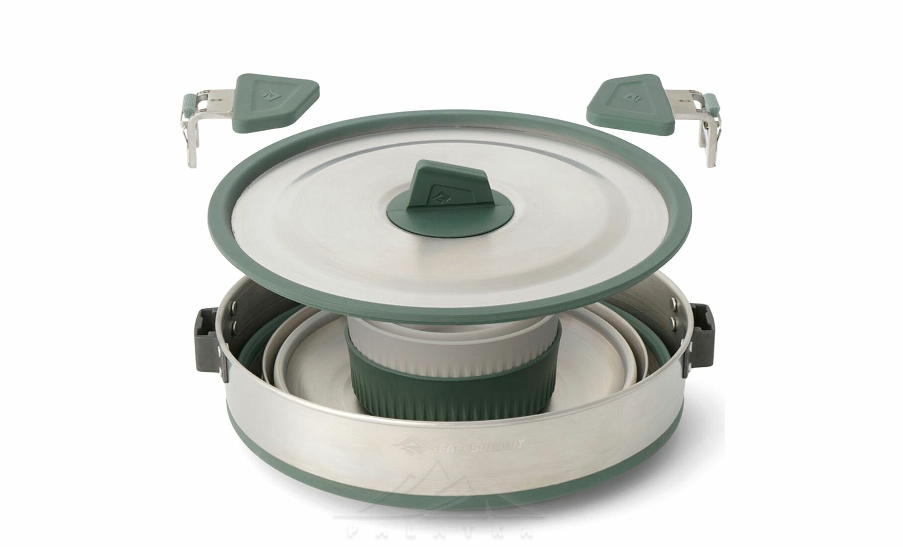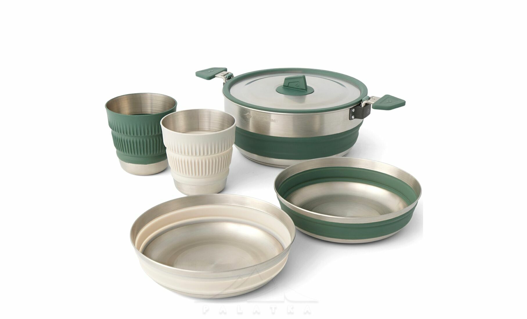 Sea to Summit Detour Stainless Steel One Pot Cook - Set 5P — функціональний набір посуду із нержавіючої сталі та термостійкого силікону з інноваційним дизайном — найміцніший у лінійці складного посуду Sea to Summit. Розрахований на 2 особи, та ідеально підходить для кемпінгу, автоподорожей, і відпочинку на природі.