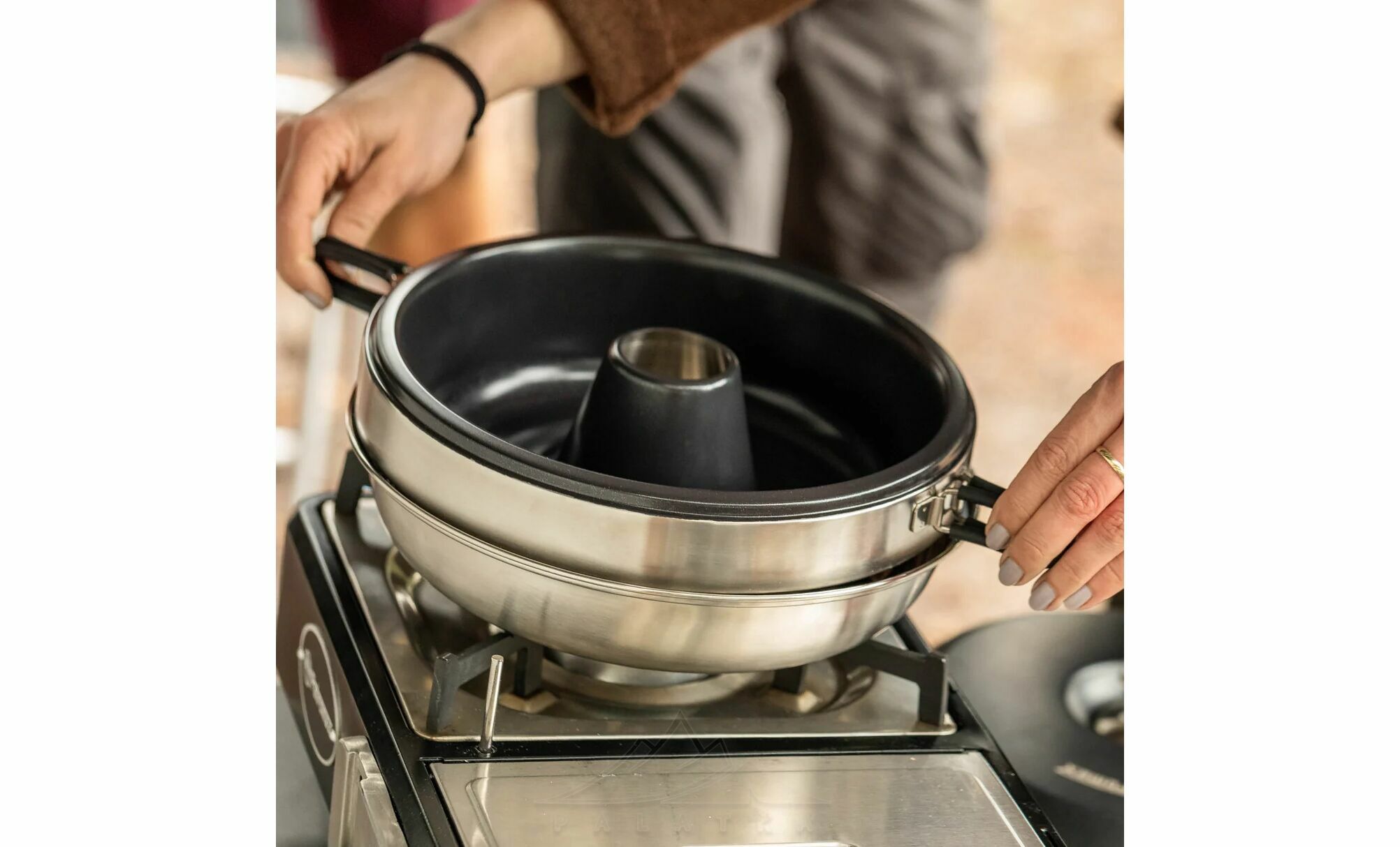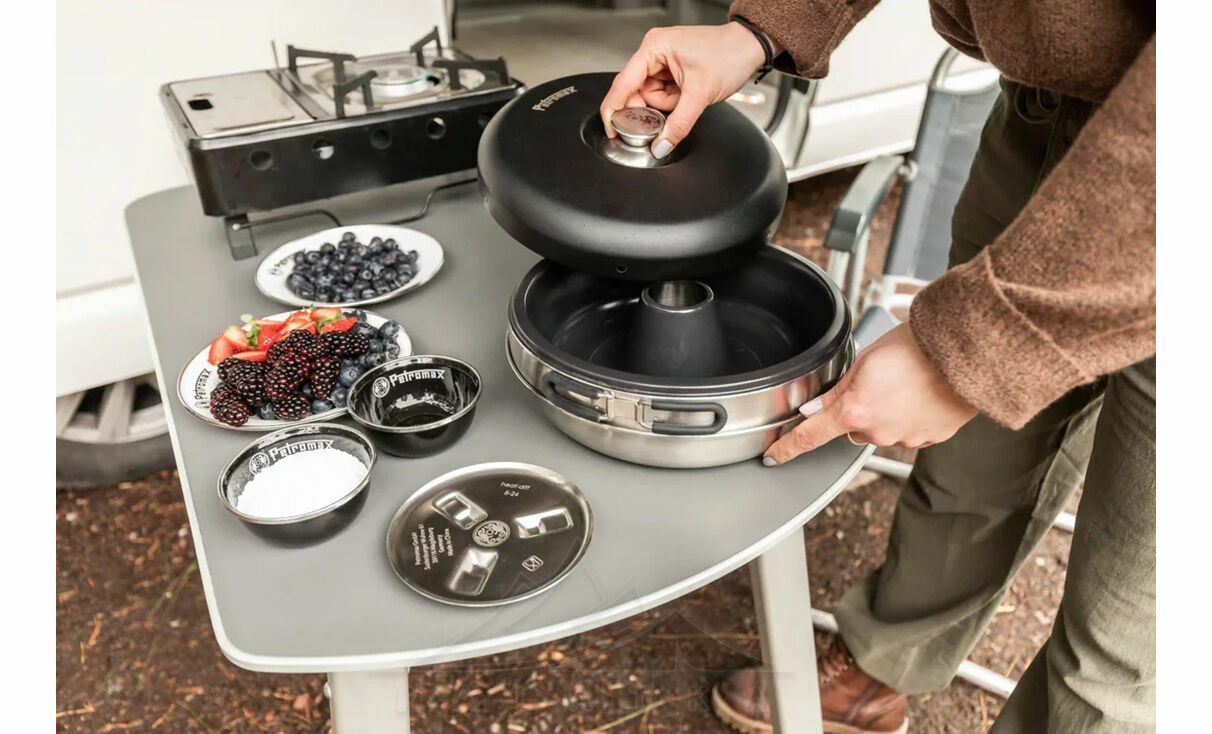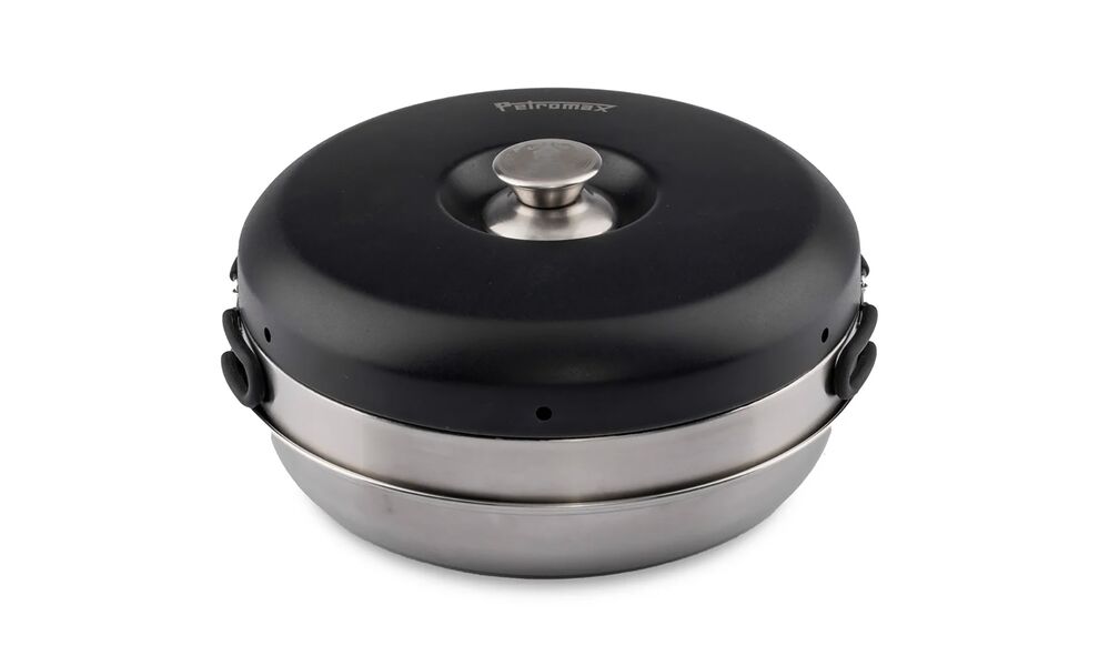 Petromax Dimego — компактна портативна жаровня з нержавіючої сталі з керамічним антипригарним покриттям, що складається з трьох елементів. Підходить для використання на газових плитках.