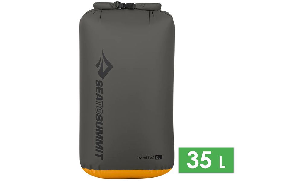Sea to Summit Evac Dry Bag 2023 — оновлена версія гермомішка з повітропроникною м'якою основою. Дозволяє компактно розміщувати спорядження завдяки ефективному стисненню та захищає від вологи. Ідеально підійде для водних видів спорту, або під час походів.