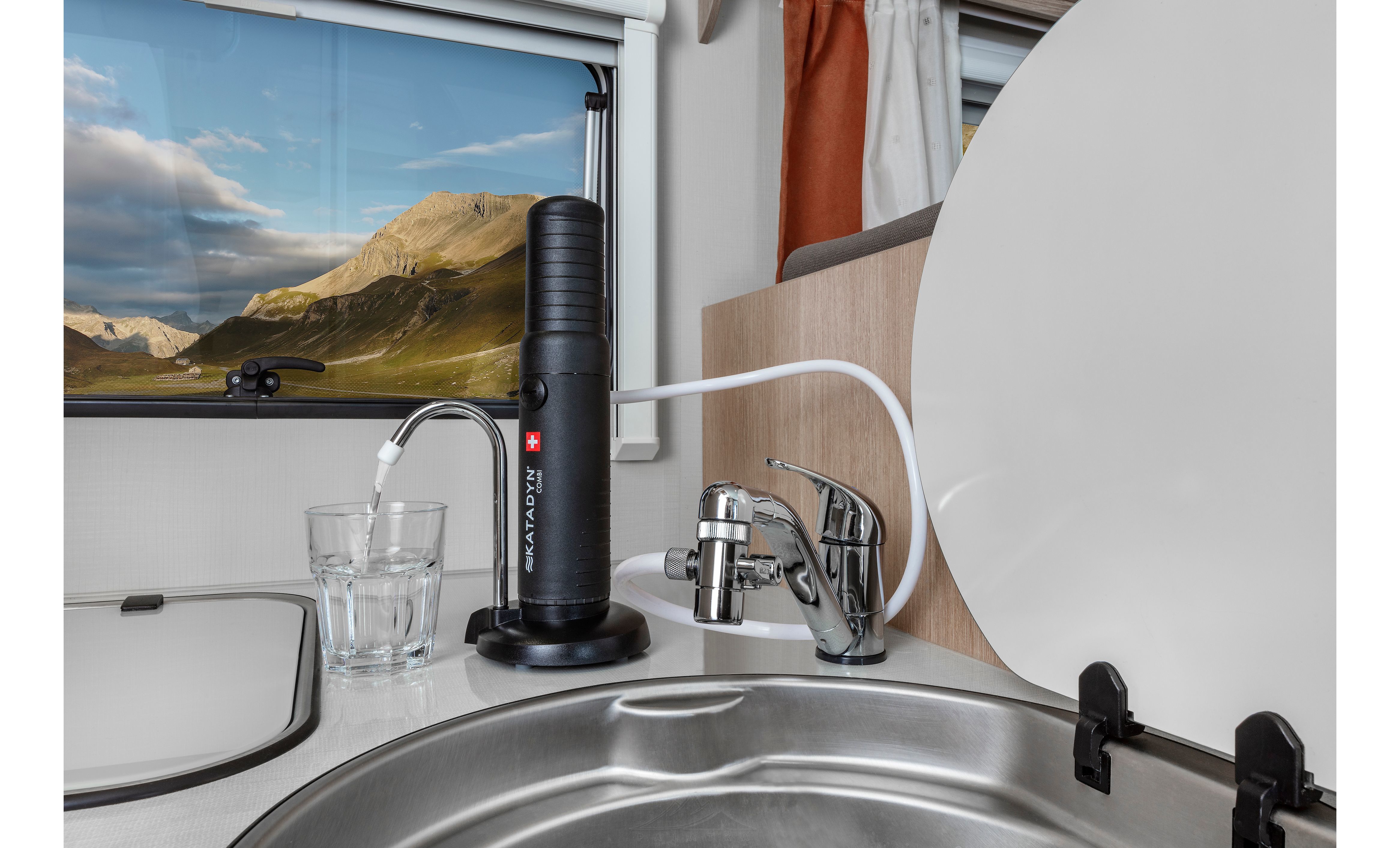 - Адаптер з краном дозволяє під'єднати фільтр до крану водопостачання на даці, в трейлері чи на яхті і таким чином отримати стаціонарний фільтр для води.